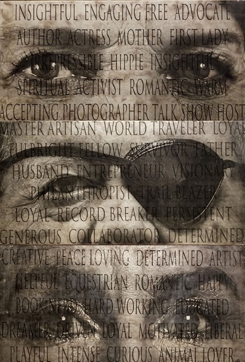 My current project is titled “I Am So Much More.” This project stems from a show I curated on mental illness. Over half of the participants requested to have their works shown under a pseudonym because their bosses, coworkers, family, or friends didn’t know that they had been diagnosed with mental illness. They were afraid of the stigma. This part of the series will consist of 40 portraits of accomplished people with Bipolar disorder, but just their eyes. I love eyes, they’re so personal and anonymous at the same time. Overlaying these eyes are 30 – 40 words that describe the person’s accomplishments, excluding the words “Bipolar” and “Mentally Ill.” These portraits will be 4 feet wide and 2 feet high. The goal is to fill a room with our eyes staring back at you, challenging you to erase the stigma of mental illness.