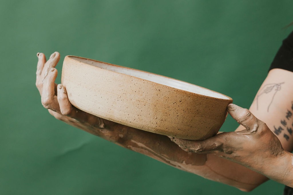 My name is Kelsey and I own Rising Dawn Ceramics. I make pottery that I design to be simple, beautiful, and durable. My goal is for my customers to use their pottery everyday. This means most of my work serves a functional purpose. Mugs, bowls, vases, spoon rests, etc. I never touched clay until college and it didn’t take me long to fall in love with it. I vividly remember a moment in my college studio when I was wedging clay (which isn’t even a fun task) and I turned to the person next to me and said “do you ever have a moment where you just know you are supposed to do this for the rest of your life?” After practicing pottery for 7 years I opened Rising Dawn Ceramics in January of 2020. Great timing, right? Throughout the past few years my style and decoration has changed and shifted, but one thing has always remained consistent- I let the beauty of the raw clay body show and I have the natural textures do the talking. This year I am expending my business and opening a community pottery in downtown Fargo, ND. I plan to dive deeper into my work, ramp up my production, and teach emerging artists and beginner potters,