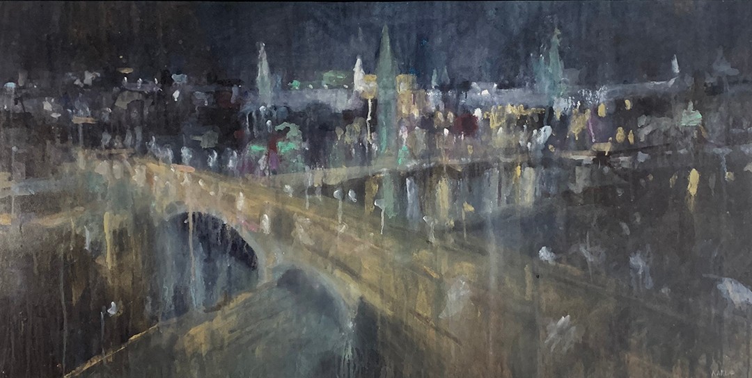 Rather than think of myself as a painter, I think of myself as a designer that paints. My educational journey had stops in Architecture, Painting, and Graphic Design, and I received a BFA in Graphic Design. This led to a 35 year design career serving some of the most elite cultural institutions in the world, including the Guggenheim Foundation and Smithsonian Institution. The entire time, I continued to paint, but when I began getting more serious, I already had this strong sense of design as a foundation which became a perfect foil or contrast for my expressive painting. Not bound by standard guidelines, I continued to experiment with watercolors, making my own set of rules. I apply thicker and thicker passages of paint, following them with streams of water channeled through lands of pigment. I welcome any random effects that are created along the way. It’s by pushing, yet balancing, the relationship of “water” and “color”, I develop a new way of painting. Luxurious paint plays a prominent role rendering a subject more abstractly. I allow representational subject matter to drop off or even disappear, as my interest is in creating mystery and fostering ambiguity.
