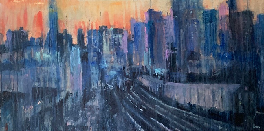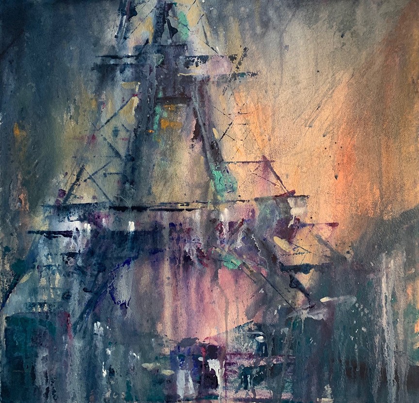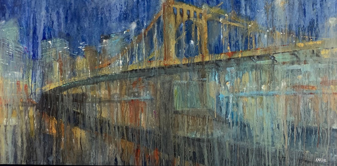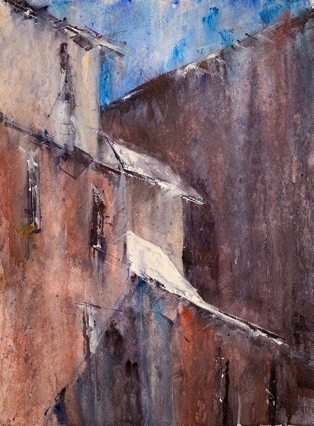 Rather than think of myself as a painter, I think of myself as a designer that paints. My educational journey had stops in Architecture, Painting, and Graphic Design, and I received a BFA in Graphic Design. This led to a 35 year design career serving some of the most elite cultural institutions in the world, including the Guggenheim Foundation and Smithsonian Institution. The entire time, I continued to paint, but when I began getting more serious, I already had this strong sense of design as a foundation which became a perfect foil or contrast for my expressive painting. Not bound by standard guidelines, I continued to experiment with watercolors, making my own set of rules. I apply thicker and thicker passages of paint, following them with streams of water channeled through lands of pigment. I welcome any random effects that are created along the way. It’s by pushing, yet balancing, the relationship of “water” and “color”, I develop a new way of painting. Luxurious paint plays a prominent role rendering a subject more abstractly. I allow representational subject matter to drop off or even disappear, as my interest is in creating mystery and fostering ambiguity.