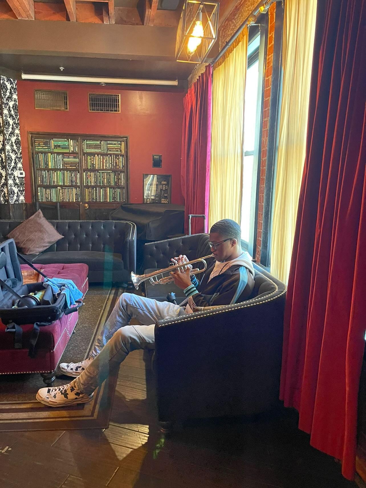 I’m most proud of the personal and musical growth I’ve experienced since the start of the pandemic. Over the past three years, I’ve played with well-known artists such as Kelly Rowland, Roddy Ricch, and Blood Orange. It was also a huge honor for me to play on the GRAMMYs and the Ellen Show in 2021. All those experiences were amazing because I had the chance to learn from my peers in my age group and musicians who have been in the industry for a long time, such as Dontae Winslow. I also grew as a leader, establishing two of my own groups, Front Yard Groove and the Kenneth Brown Collective. Creating those groups gave me the chance to grow as a musician and person, which helped me find my voice musically.