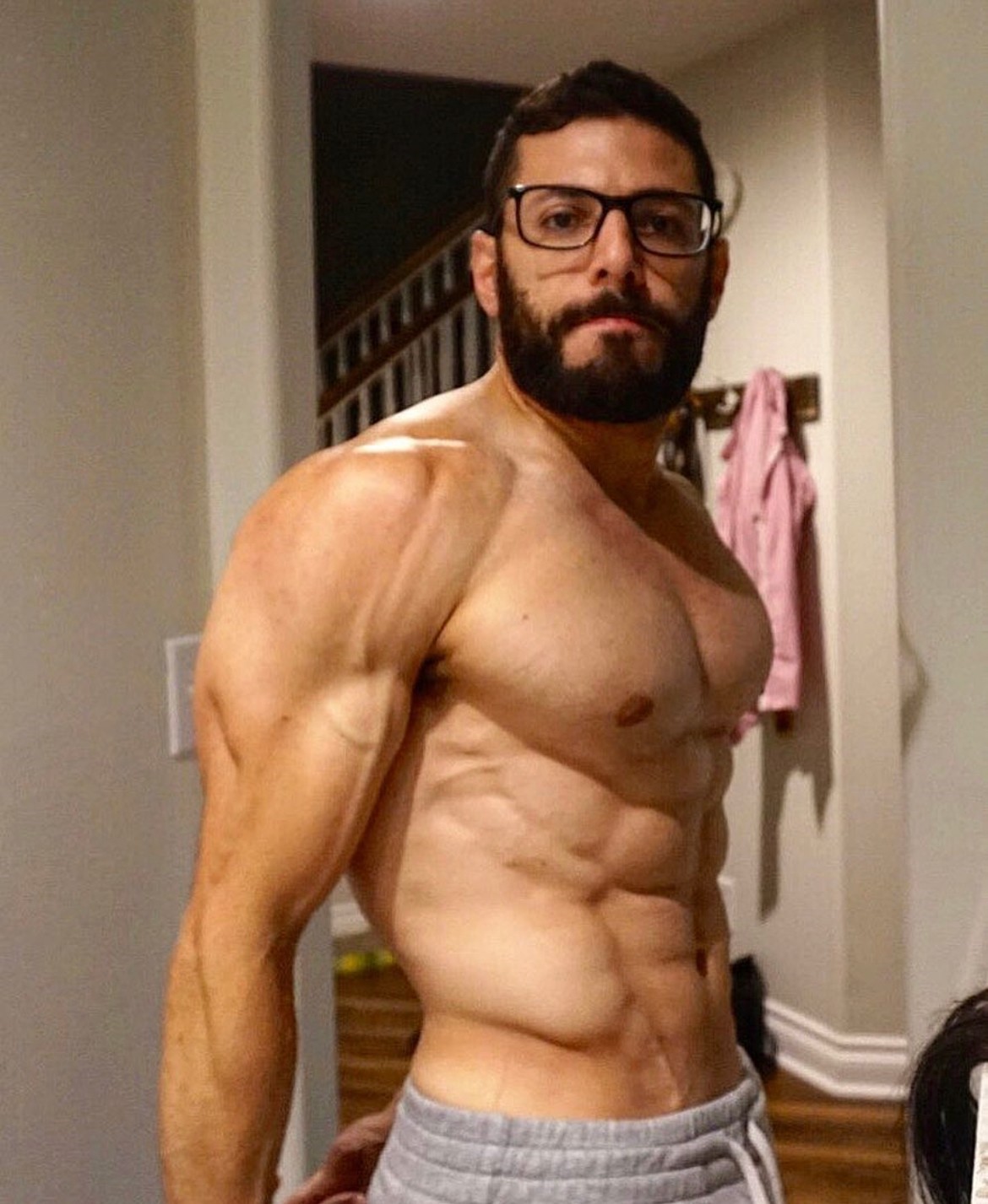 He put the dumbbells down and responded “I dabbled in bodybuilding and powerlifting when I was younger.”