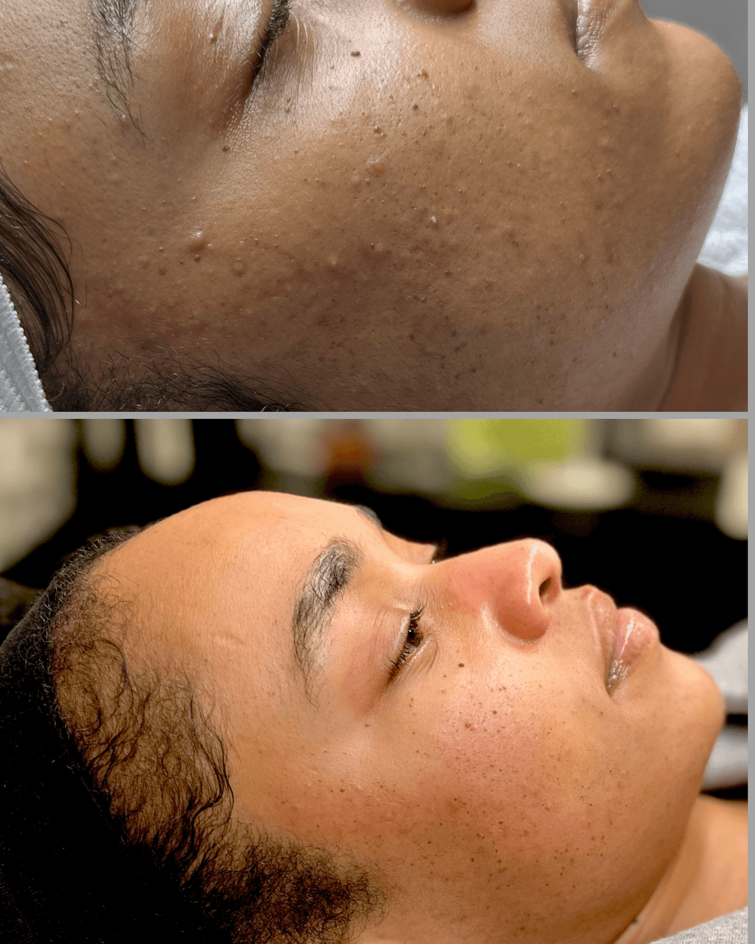 I love to take the holistic approach when clearing my clients skin, because a lot of us don’t realize how impactful our lifestyle choices can be on our skin. So I provide resources, discuss and educate my clients of better lifestyles options to clear skin acne and hyperpigmentation as well.