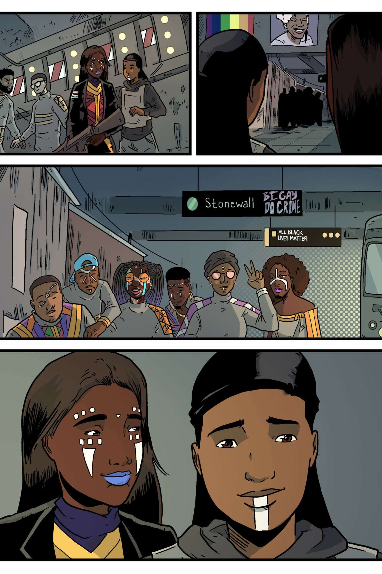 The most meaningful project I’ve worked so far on has been Stay Woke. I love all of my projects and they all are close to me but Stay Woke feels the most comprehensive of my passion for comics and Black liberation. It brings those two things together in a way that is both very personal and reflective. My experience in undergrad at a PWI helped shape my ideologies and sharpened the lens through which I saw racism and inequality. I created a series of artworks for my undergraduate thesis that explored Blackness and policing. This set the pace for my comics work going forward. At the time of release (February 28th, 2021) America was in a reignited discussion about race and anti-Blackness. I’d been working on the story for roughly a year before that point while pursuing my M.F.A. at SCAD. Conversations with my late cousin Gina inspired me to write this story. I thought about police, I thought about appropriation and exploitation and I thought about liberation. Envisioning a dystopian future beyond the oppressive times that we’re in now gave me space to think about Black perseverance in spite of the systems and harm affecting us historically, modernly, and in the future. Outside of thinking about the struggle, I thought about the future and Black people shaping their future. I thought about Afrofuturism. The book would be nothing without that final image, and what I think it means most to me is hope.