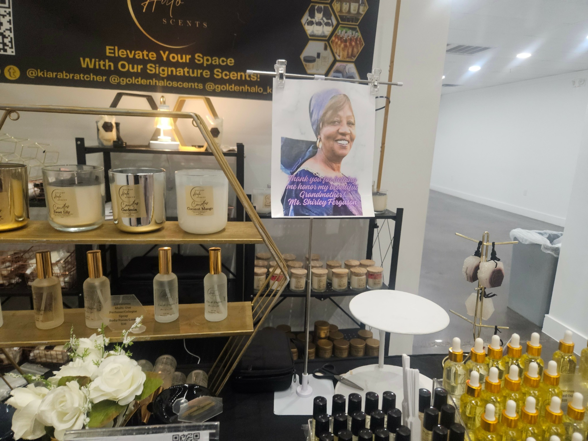 One of the most defining moments of my journey happened just days after the passing of my grandmother—the very woman who inspired Golden Halo Scents. I was overwhelmed with grief, navigating my emotions, and still trying to show up for my family, my responsibilities, and my dreams. It would’ve been easy to pause everything. But instead, I turned my pain into purpose.