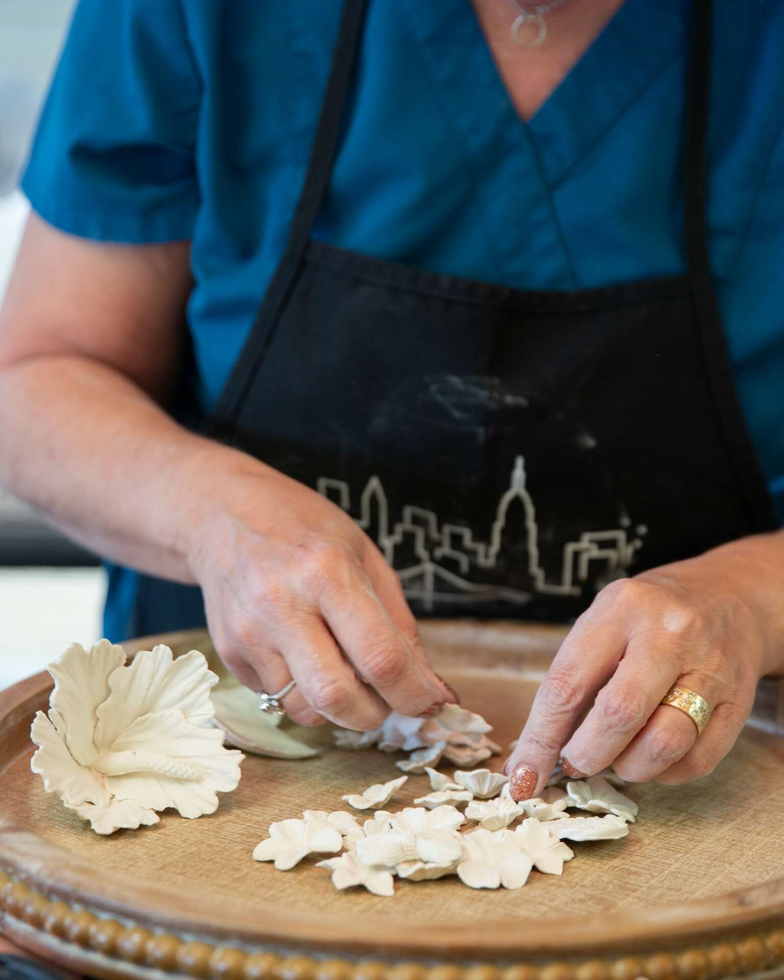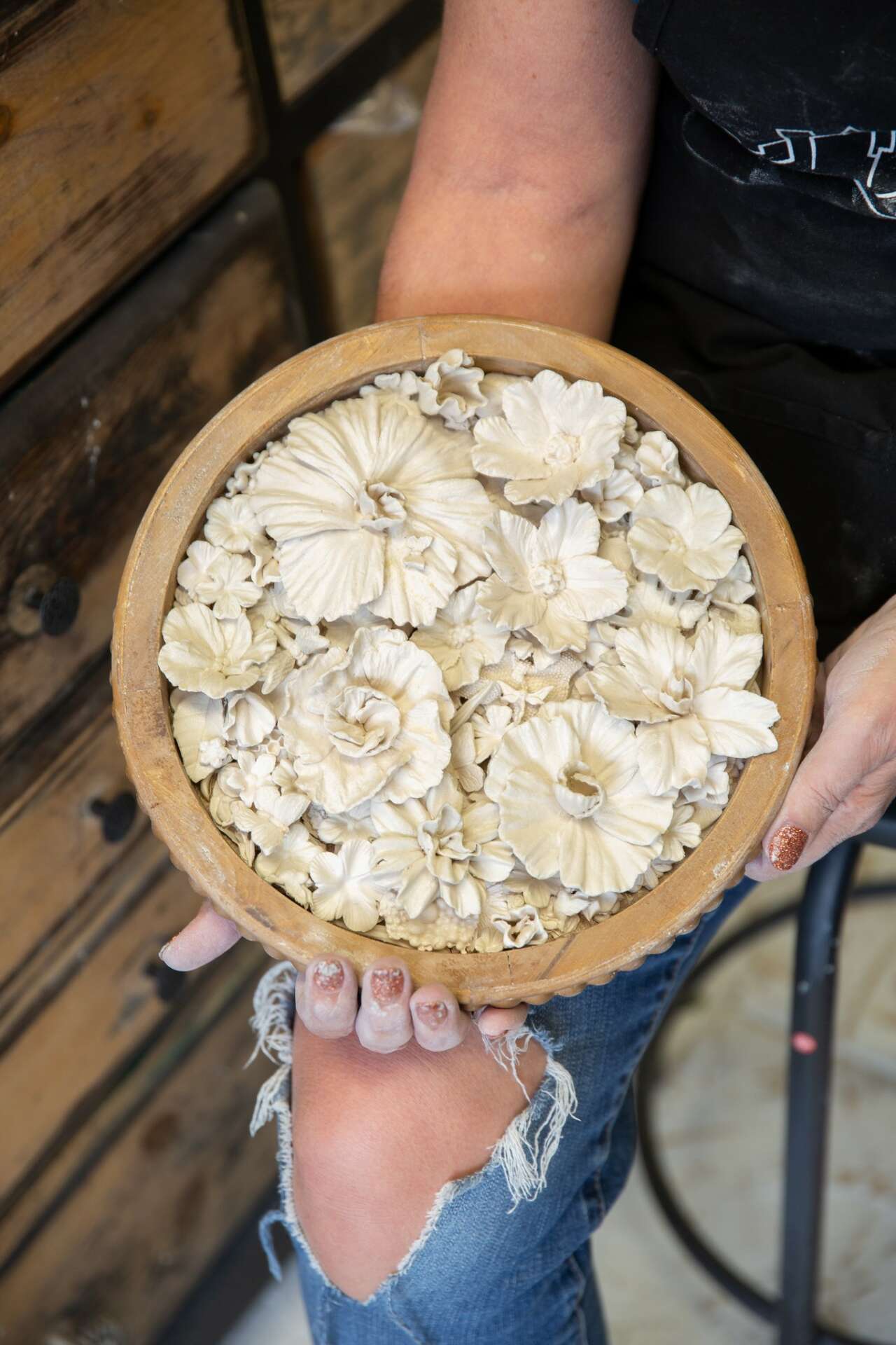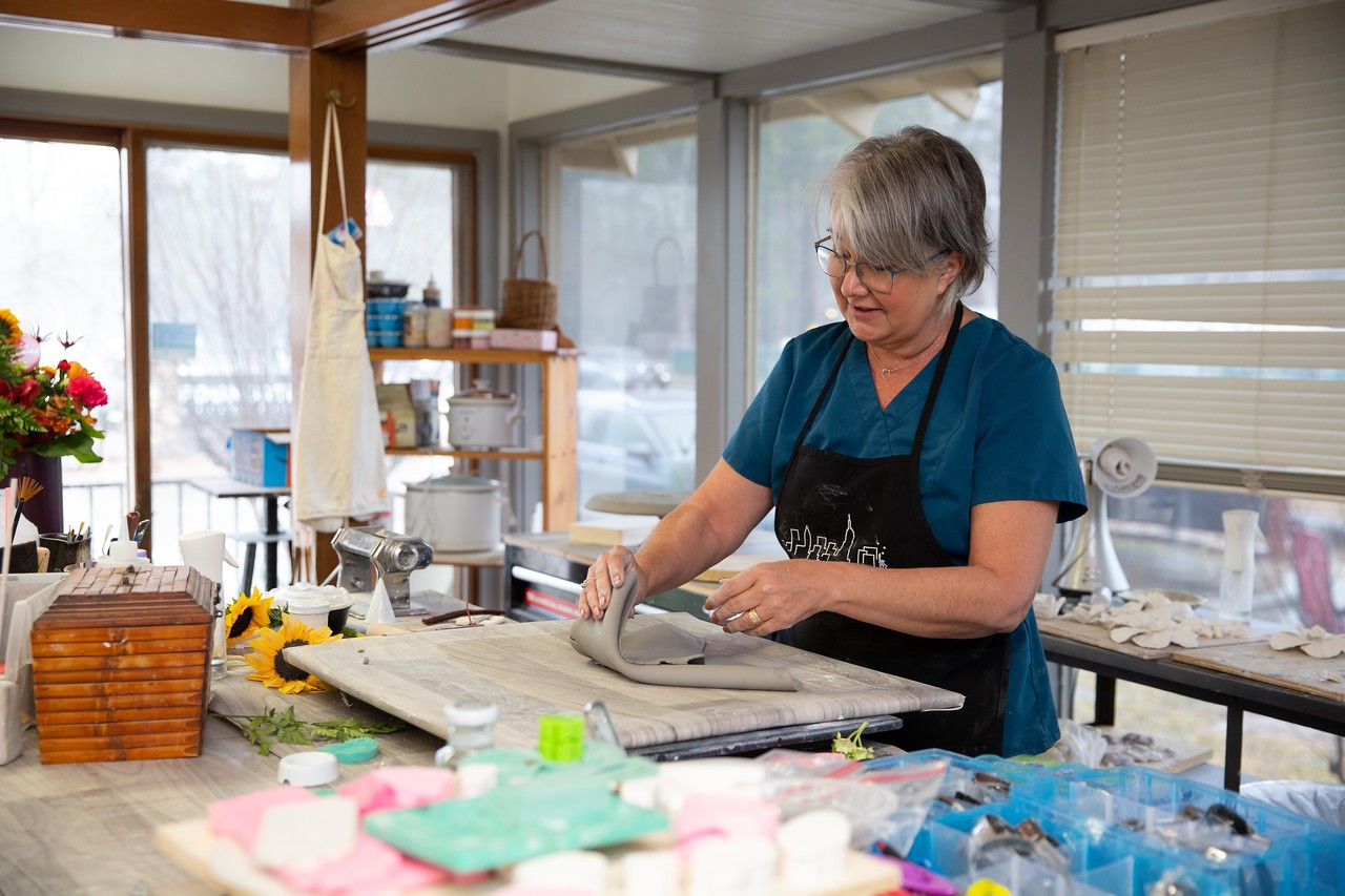 I have always been creative but never felt comfortable saying I was an artist. That is until I found ceramics. My husband and I took a class about 5 years ago and have not looked back. Both of us refining our skill and look. My work continues to evolve as My fascination with textures and layers has greatly inspired my work. For years I was stuck with this idea that I had to achieve perfection and realism in my art. This left me feeling frustrated and constrained. Just the idea of perfection often created unachievable standards I set for myself, as well as misguided ideals of what good art was. My practice recently has been learning to embrace imperfection, to find the beauty in it. Thie last few year the practice has begun to influence my art. I have given myself permission to play with the clay, pushing boundaries and exploring. Breaking rules all the while allowing each piece to have its own character, its own story. I am finding that I am enjoying the process, as well as being curious and free to explore and play often not knowing what the end result will be. The raw and unrefined look and feel of the uneven free formed edges and the layers of texture and wear and tear on the surfaces is something I hope makes you want to touch and look at my work, to explore. Each piece has its own unique individual character, its own story and I find the imperfections to be aesthetically pleasing. I donate the proceeds of my work to compassion United, a nonprofit in Conroe helping The people less fortunate in our community.
