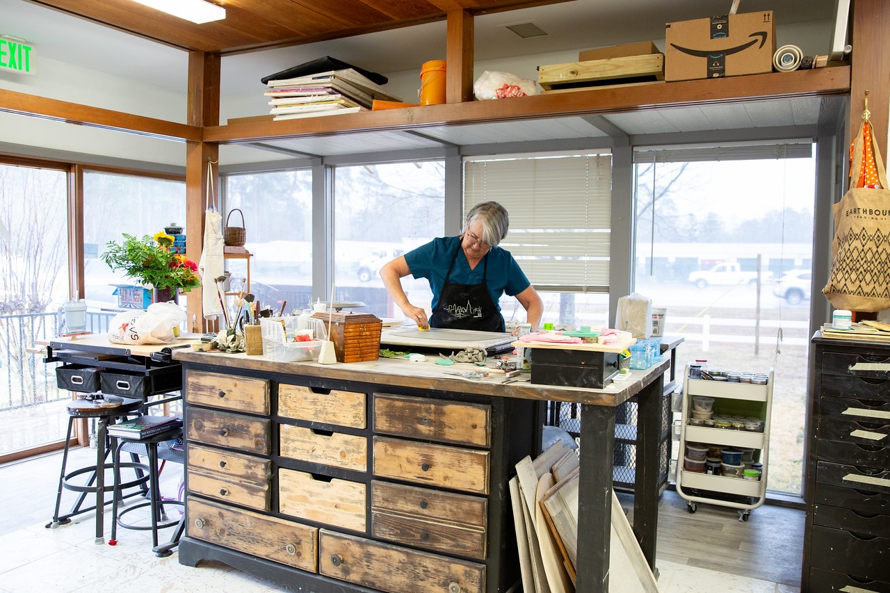Covid actually helped Ron and I create our business model. We were tired of being stuck at home. We had our studio in our garage spending the day going from the garage to the backyard to the living room the garage the backyard the living room. Having recently moved to the area we didn’t know anybody nor had we anyway to connect while everything was shut down. We decided it was time to try to find a space for a studio that was secluded yet gave as the opportunity to leave our house. In the process of looking for an affordable space, I kept thinking how great it would be to have an art community . I found many places that might work, but Nothing called me strongly enough to pull the trigger. We rented a space not far from our home. It was everything we were hoping for, except we were the only artist in that Community. There was a small studio space that had a florist a few miles away from where we were renting, and every time I drove past it I remember thinking how it would make an amazing studio. I stopped to inquire about the space and it had just been leased out. I continued to covet that building for the next few months. Low and behold that little property with the florist studio popped up on Zillow and it was for sale. I immediately called met the owner and put in an offer. The property consisted of two small buildings on Honea Egypt Road and shared a parking lot with a chiropractor. It had all the utilities installed and was being sold as a teardown. We purchased the land and I worked with Bel gra construction designing affordable suites to create a small art community. We built three little duplexes with their own temperature control and a sink, thus was born The Bella Bottega. A collaborative working artist community. The timing was perfect as the business partnership at the florist was dissolving and they desired to get out of their lease early. The back building became a shared space with a bathroom and kitchen, that now has been turned into Ardest gallery curated by Julie Verville. In our little duplexes we have six studios, Housing eight artists! We are approaching our one year anniversary in November and have a very small turnover in the studios. We have a wonderful group of diverse artists that we can co create with, get inspired by and learn from. We Open our doors to the public with a Champagne and Chocolate art walk the second Sunday of every month along with hosting special events and art classes. Community is so important, and having our own small separate studio spaces with which to create has truly been amazing. My only regret is that we couldn’t build more!