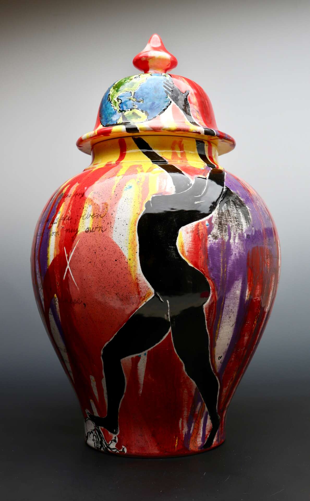 I love being a ceramic artist! My Mom was a fashion illustrator but I never had more than a high school art class until I was about 30-ish. Once I got my hands on clay, I never let go! I stay busy year round creating and fulfilling custom pottery for collectors, making a body of work for a few art shows every year and take the invitation; “A Call To Artists” very seriously. This is by far my most engaging part of being an artist and maker. There was an exhibition; REBELS! that called my name during the beginning of a global pandemic! George Floyd was killed and I was so sickened by it and lacking a way to help, I made a huge urn and spent a month covering it with thousands of people who reacted as I did (and do). As a survivor of a drunk driving car crash, I fight my chronic pain by telling stories. One show titled “Fractured Spaces” got me out of my comfort zone of keeping my chronic pain a secret for decades. I often wake up and write down a creative dream or a detailed idea for a design. With this show, I rolled out a slab of clay, made a life size kite, sliced the kite into pieces similar to large mosaics and told the story of my rich and happy childhood. When I glazed and fired it, I added a twisted vertabra tied up with kite ribbons. This piece won the Exec Director award! The meaning behind almost every piece I make is what keeps me coming back to clay. To tell a story in every shape and size of my tableware and decorative art. I feel more than grateful to have the opportunity to create and share everything to others. What a sweet life I live