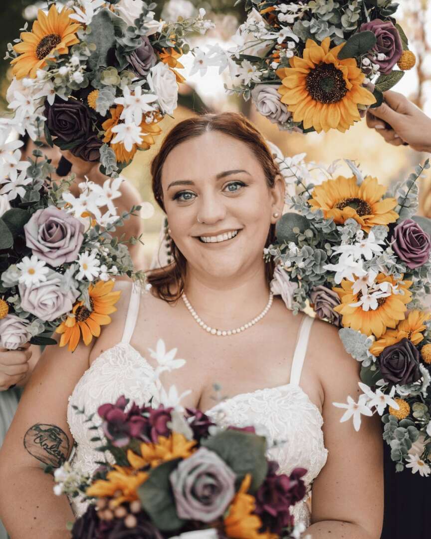 I am truly blessed to work with so many brides. Each weekend a bride has chosen to trust me to style their hair and makeup for the best day of their life. I work with brides that often have never even had their makeup done before which requires so much trust and communication. I find each wedding to be meaningful. I love helping women to see how beautiful they are. As a teen I grew up with acne prone skin and suffered all through my college years with red and broken out skin. Makeup is what really made me feel like I could make my skin look beautiful. So I know first hand what it is like to loose confidence in yourself without makeup. As for hair I feel so special when girls are shocked that the magic I can create with their hair. It feels like such an honor to be trusted with these details of a wedding day!