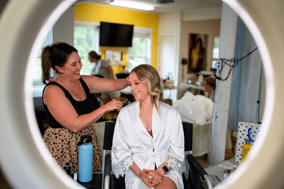 I grew up as a second generation cosmetologist. My mom gave me huge 80’s bangs for my laser backdrop school photos and loved to put blush and lipstick on me from a young age. When I got into high school there was the opportunity to apply to get into cosmetology trade school. Only 60 girls get in from multiple high schools and I was in! In my small town we finally got an Ulta to open and I was lucky enough to work there to help build the store. I fell into the bridal industry from friends trusting me on their big day. And with the help of word of mouth and social media have continued to stay booked all year!