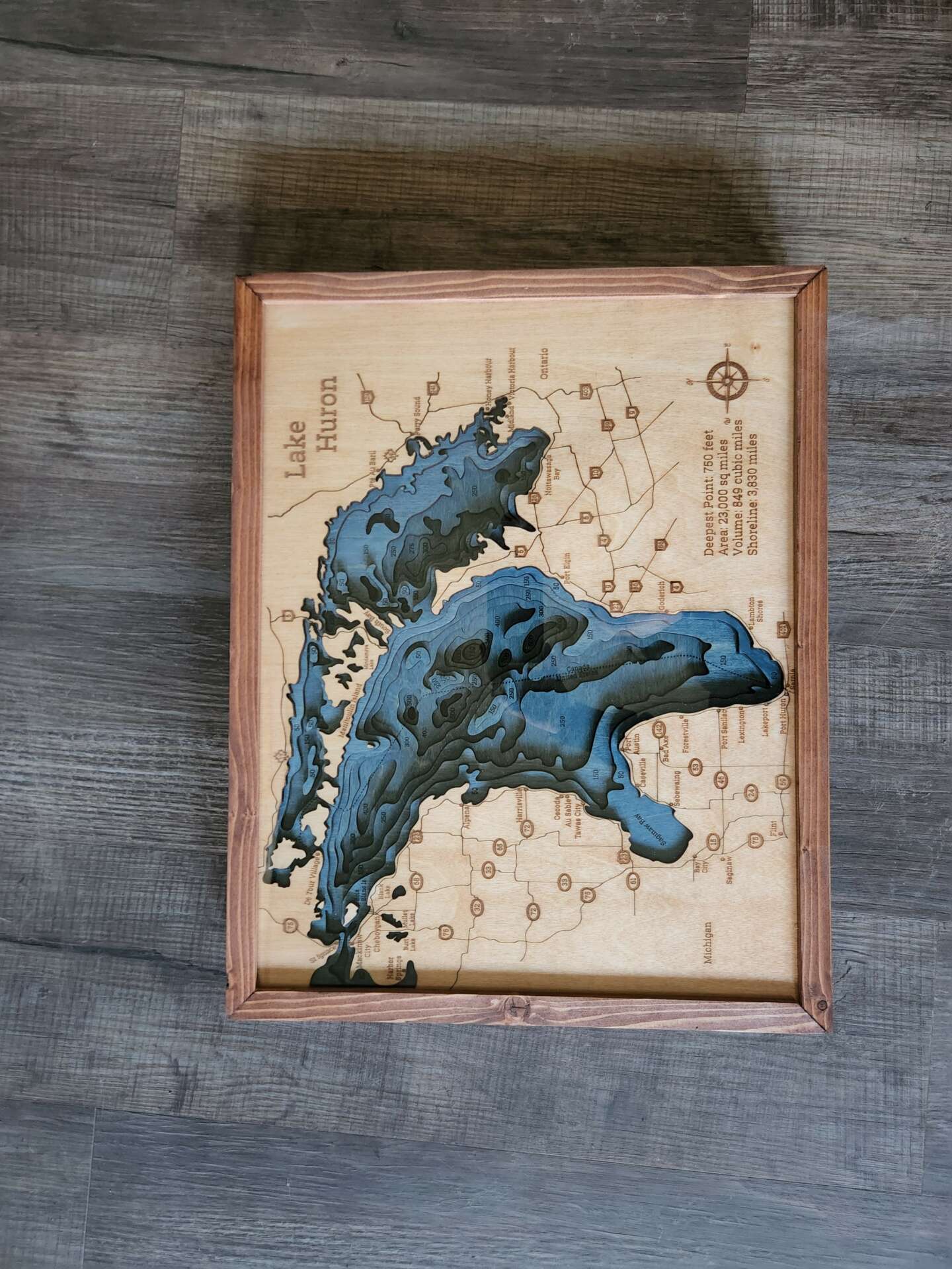 Today, I focus on laser cut home decor. I make everything from bathymetric maps to Christmas ornaments. Being originally from Michigan, and the large amount of lakes we have, my focus is on bathymetric maps. Recently, I’ve gotten into layered art, which has opened up a whole new world of creativity for me.