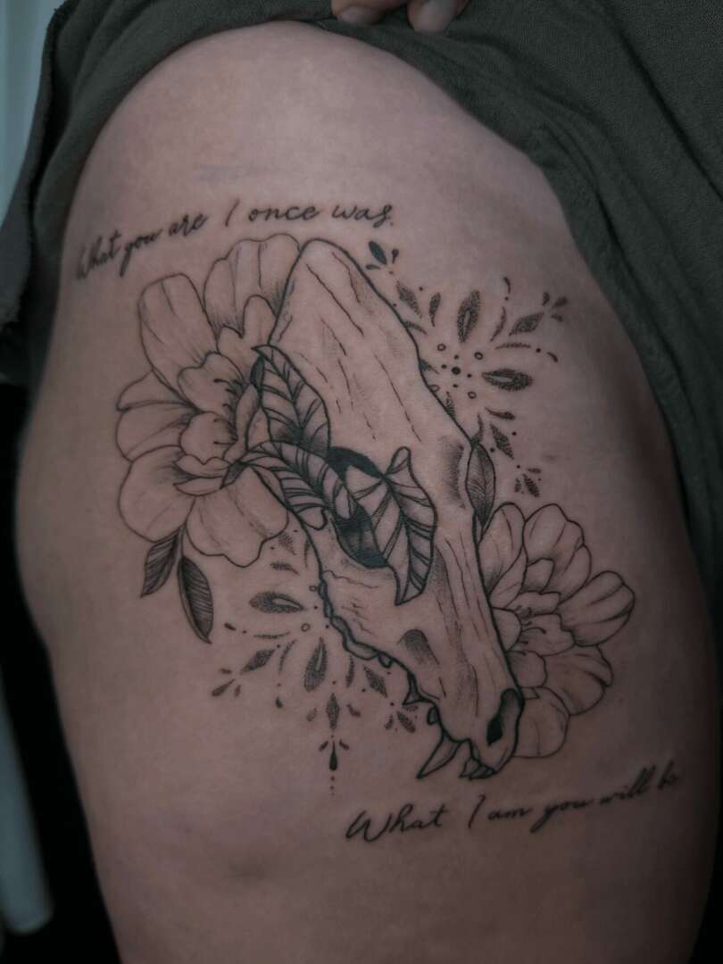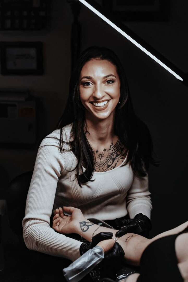 I knew that when I got into tattooing, I wanted it to be a meaningful connection through art. I specialize in illustrative and fine line black and grey work, but I like to describe my approach as intentional, heart-lead and conscious, and I think that is the most important part of what I do. My clients come to me with the intent to permanently decorate their skin with artwork that resonates with them on a deeper level, whether it’s a person, place, experience, or object. I get to create art that emits a feeling or emotion, even if it’s just for fun! Bringing a vision to life in an environment that feels safe and comfortable is my mission.