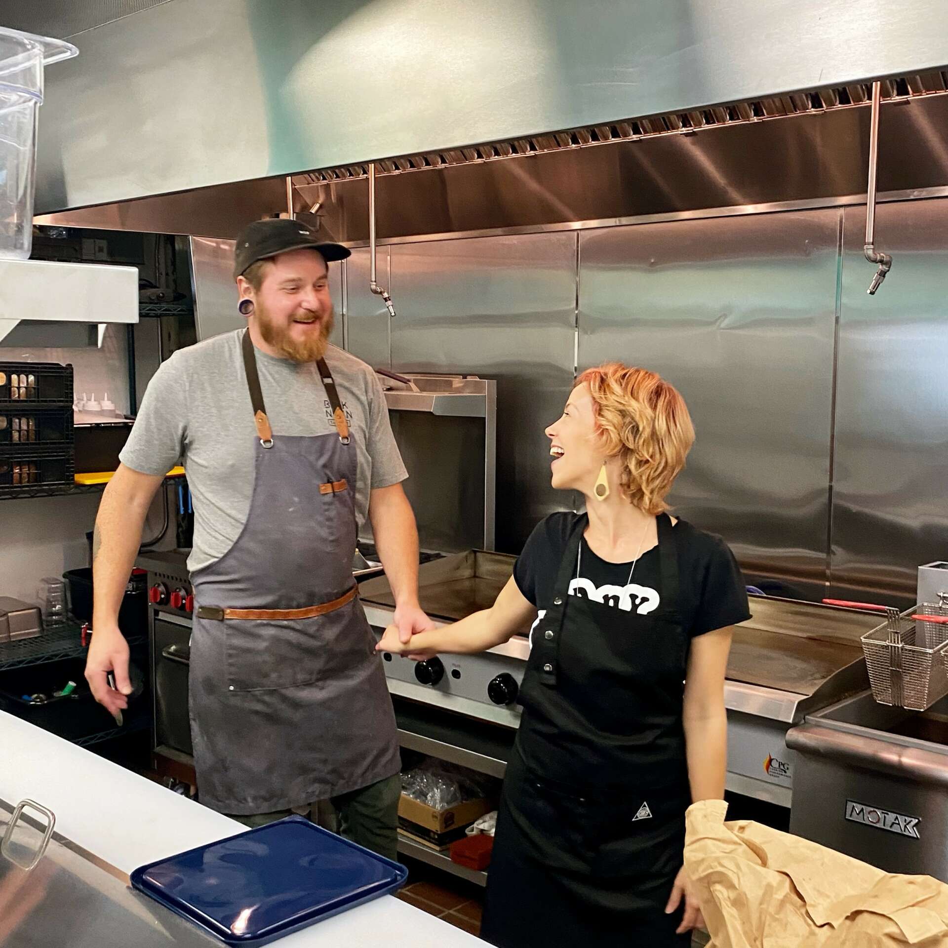 My husband and I had always wanted to build something of our own together but weren’t quite sure what. We are both creatives- I went to Kendall College of Art & Design for fine art, specifically printmaking and had worked as a server since I was 16. Jason was a snowboard bum in Montana for awhile after he graduated high school. He moved back and started going to culinary school while working in a restaurant, but quit pretty quickly, realizing he could learn on the job and get payed for it, and has worked in kitchens ever since, always rising to a kitchen manager, then chef. He’s great at savory dishes and really enjoyed making desserts. We’ve both been in the service industry for over 20 years.