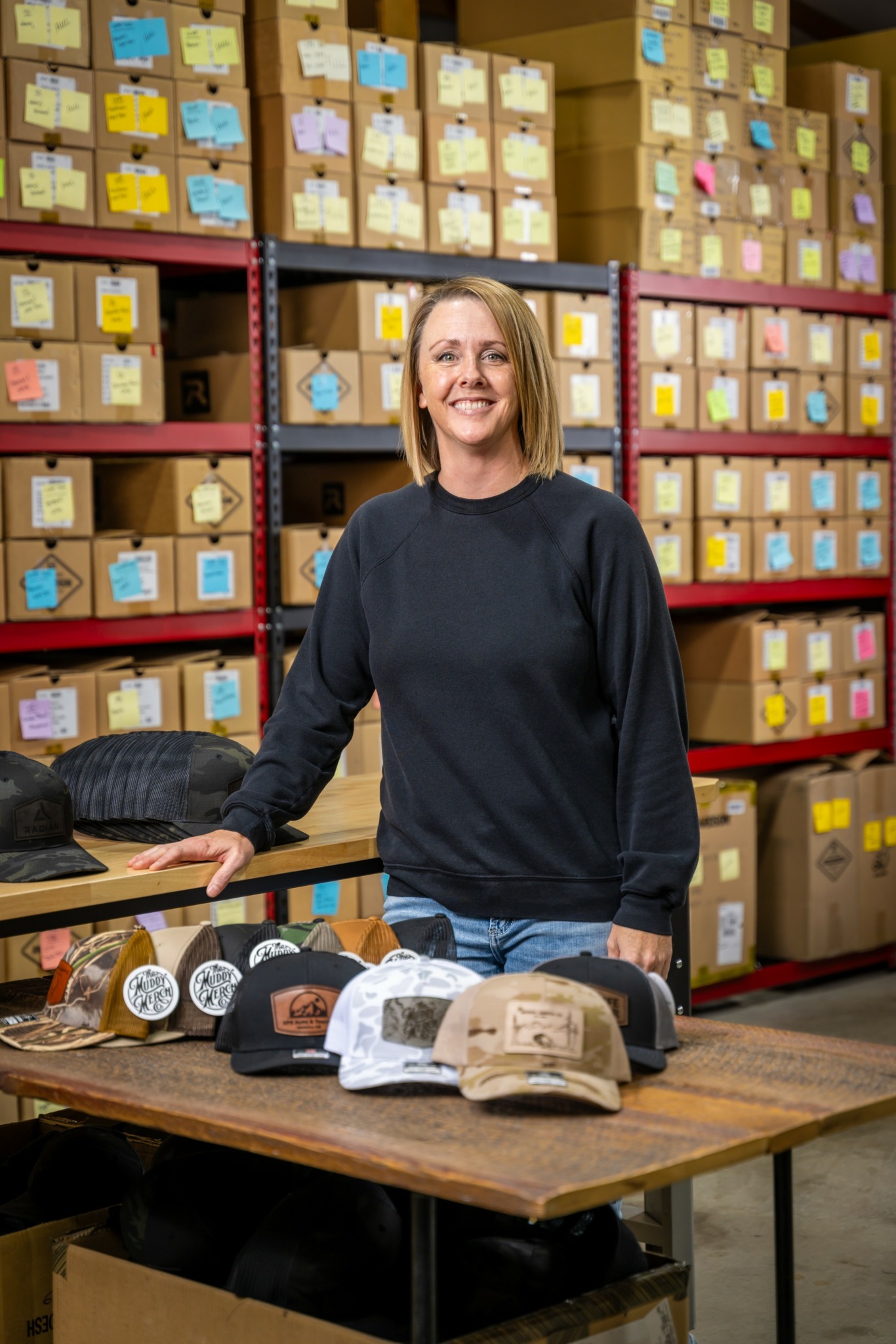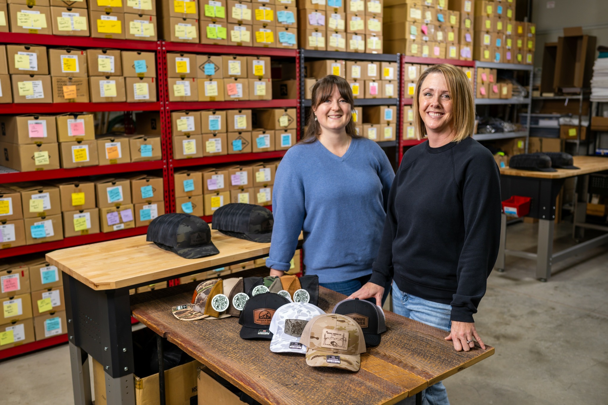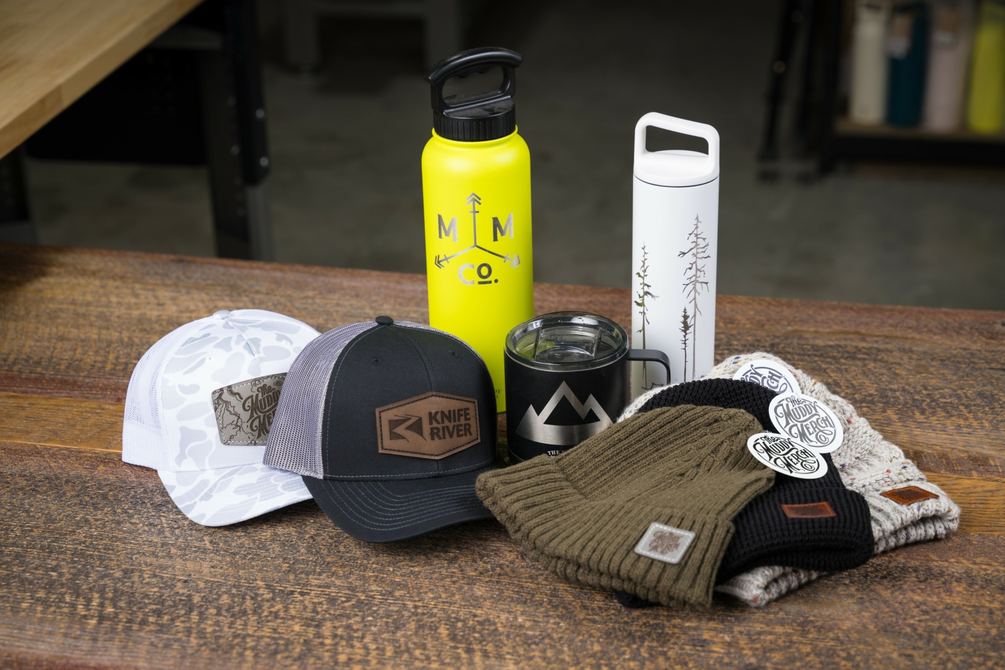 The Muddy Merch actually started in the corner of our one car garage in late 2018. I had previously spent about 10 years in the banking industry, but found myself feeling completely unfulfilled and with a body that was breaking down from years of sitting at a desk. In 2015 my husband and I took the scary leap of quitting our jobs, selling our home, and moving hundreds of miles away into the guest house on my parents ranch. It was wild to spend so many years building “careers” only to find that wasn’t what was important to either of us. In the following years my husband landed with brewing company that he still works at today, while I tried my hand at starting my own business…something I had always wanted to do.