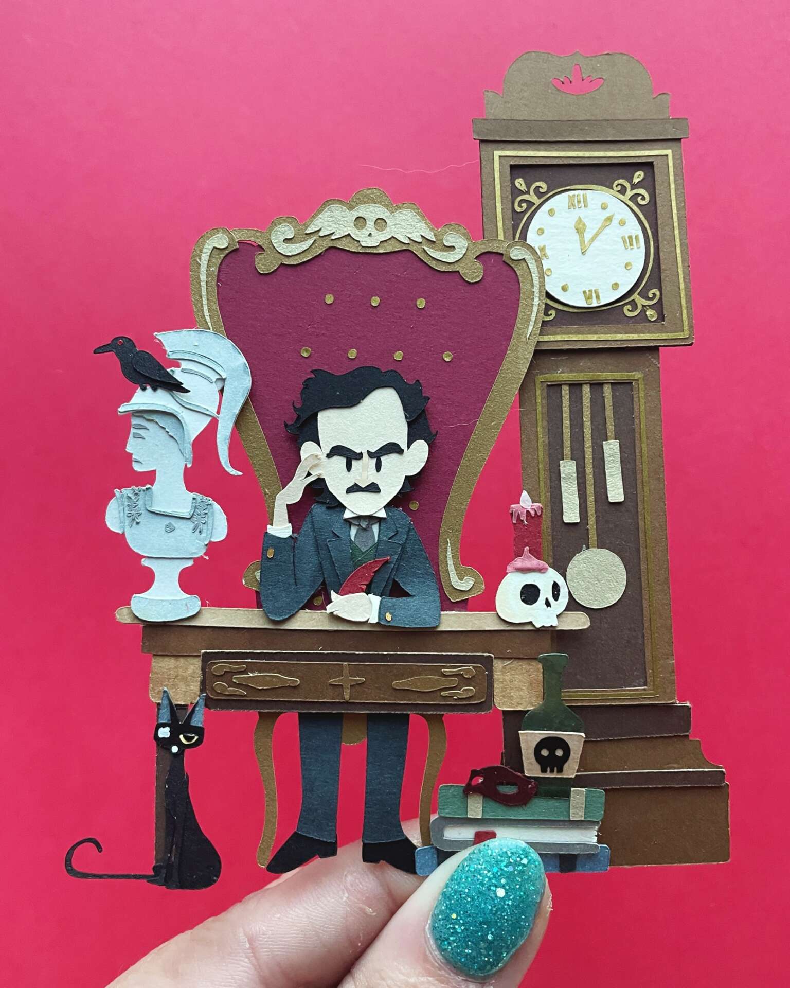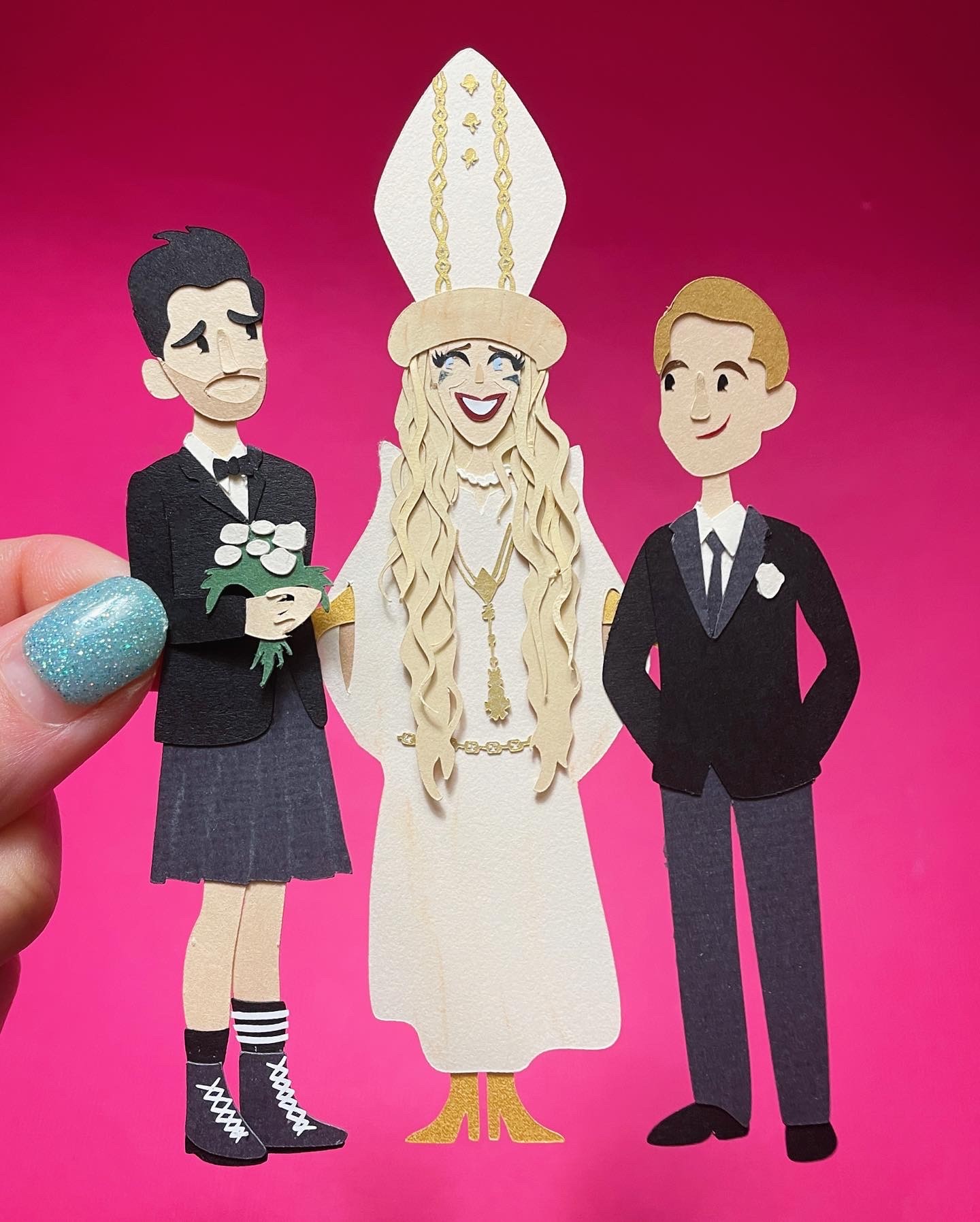 Art has always been a part of my life. Ever since I was five and I finger-painted my first self-portrait, I knew creating things was something I was meant to do. From drawing comics when I was 7, to designing my own card game when I was 10, to illustrating an ill-conceived soap opera about my friends when I was 13, my childhood was perpetually speckled with spouts of imagination. Through practice, patience, and paper, I have been able to fine-tune my discipline into one that I’m very proud of. It took some time to embrace the new title but now I confidently say I am an artist who specializes in capturing the likeness of a person with the use of paper, resulting in (what has been described as) a cute, charming, and mostly accurate portrait. From making fan art of shows and movies I love, to creating promotional pieces for clients like McDonald’s, Evernote, and Dancing with the Stars, to making custom wedding cake toppers on commemorate a special day, I love creating these little paper pieces. My style is minimal, and the process can be long, but the joy is genuine in every picture I make.