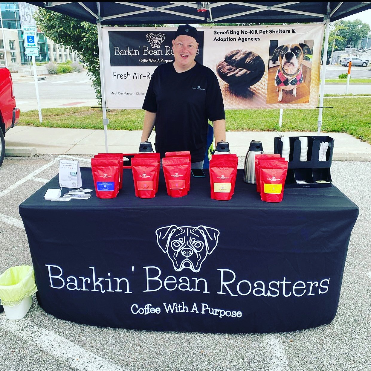 I started and still sell my coffee by the bag at the Blue Springs, MO Farmer’s Market. Every Saturday from May-October I set up and provide samples to those that want to taste what I roasted up for the week. 2022 has been a very successful year. So far, Barkin’ Bean Roasters sales increased by 48%. This excites me as the more we sell, the more we are able to give back to an animal shelter. This year we going with a local shelter. I have let that shelter know, but have not publicly announced it yet. This is what really excites me about my company. I enjoy the roasting process, but I really enjoy meeting new people, their fur babies, and those who come back to see me week after week because they love the coffee.