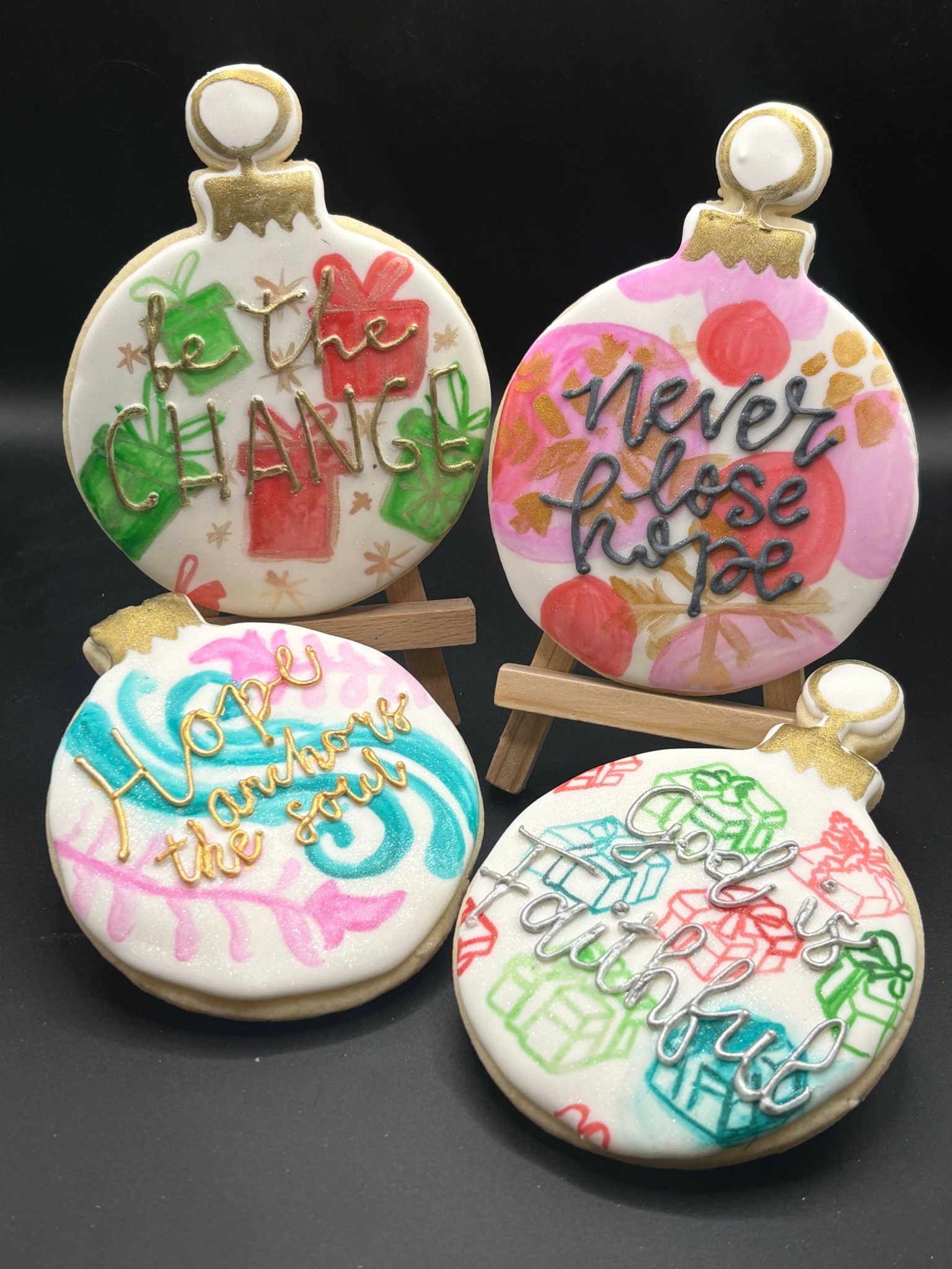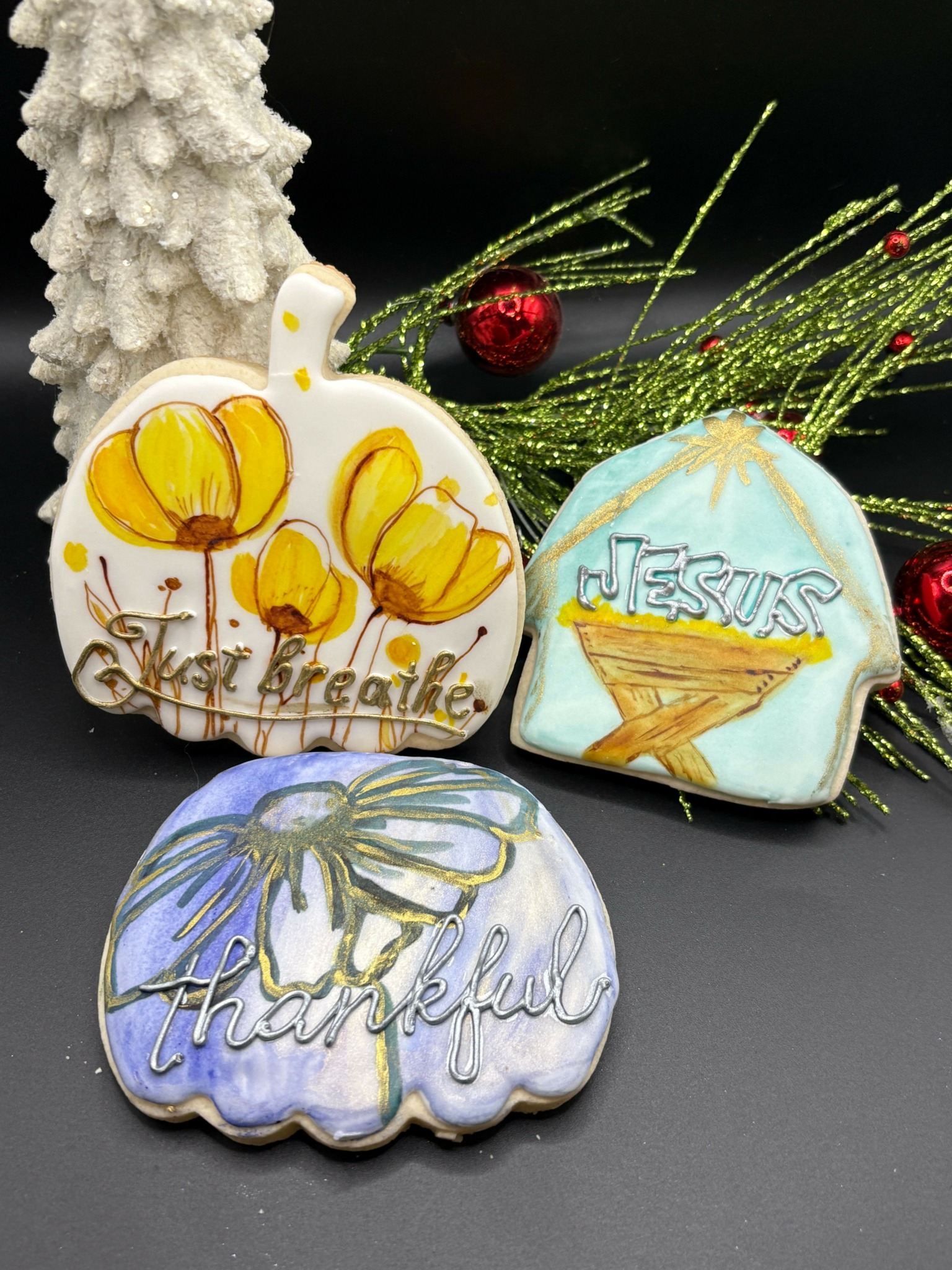 I have always worked from home while raising our 3 children. i am creative and enjoyed designing, decorating, being crafty and making things pretty. i made cookies with buttercream for our children over the years and as they got older it was more for the holidays. this past summer i decided to try royal icing cookies and absolutely loved the creative and design part of it. i started baking and decorating them just giving them to family and friends to try. the feedback was great! the more i decorated the more i liked the idea of a cookie for a card and that is how i came of with the name, Beyond a Cookie. i decided to sign up for our local farmers market and the interaction with the customers was amazing. the way we were able to talk about life and the inspirational messages on the cookies was all it took. after that market i got the courage to go to a local business that offers craft classes once a month after hours. i approached her with the idea of a pop up stand for her events. she liked the inspirational cookies and agreed. putting yourself out there in your small hometown is a lot but i am so glad i did. since that one pop up event i have been setting up at all of her classes, going to other local markets and events, meeting people and creating a client base for custom orders.