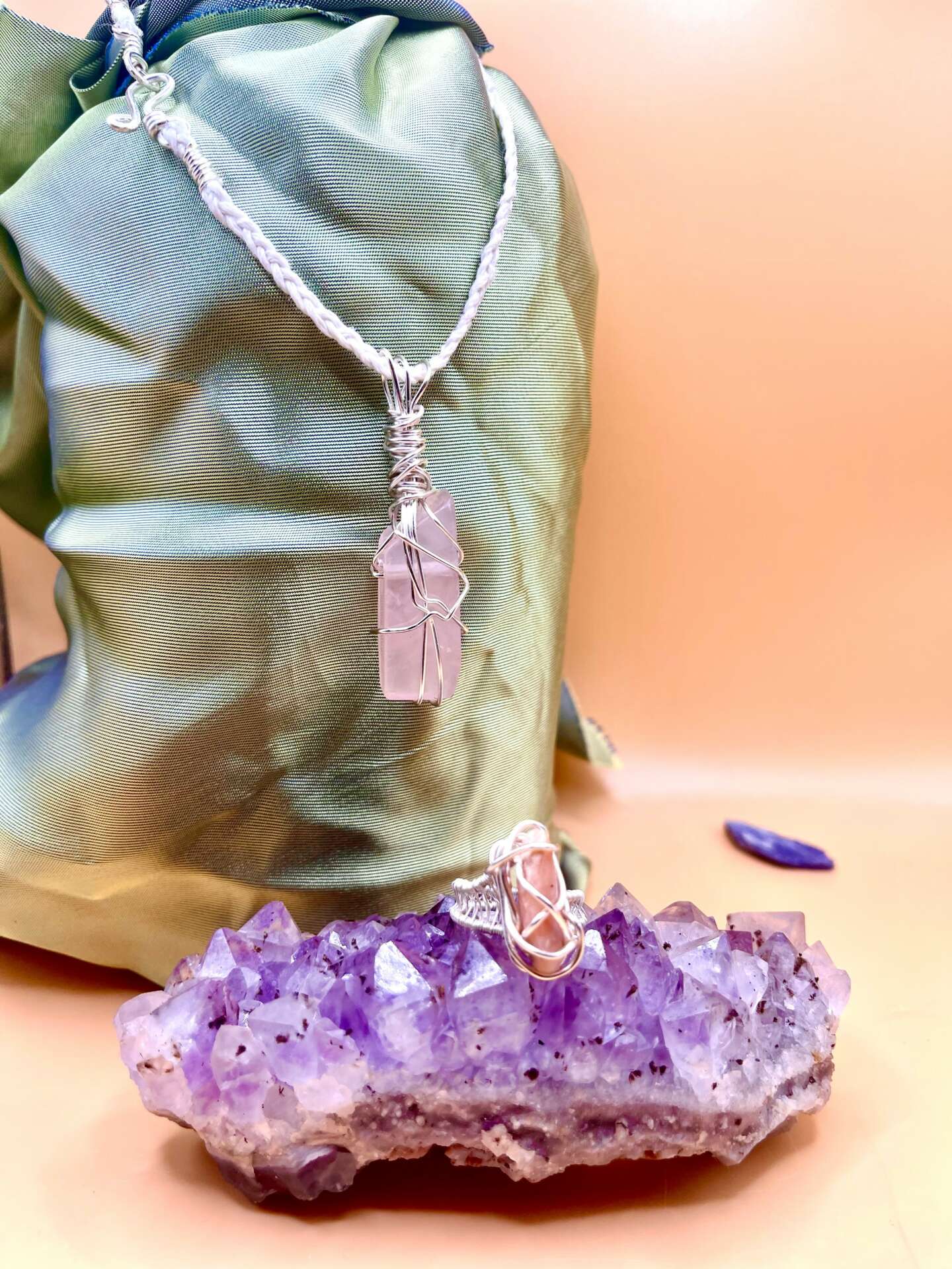 Anudawn represents my rebirth, I began wire wrapping crystals 3 years ago during a personal stage of growth and transformation. My first visit to a “spiritual shop” was were I discovered my first crytals. Ever since I got my hands on them I knew that my purpose and crytals were intertwined. Each crystal I discovered, used, and learned about helped me grow into a New version of my self that sparked a joy I hadn’t felt in a while. I followed that spark and decided that these crystals could do the same for other people that may need encouragement during their journey. I chose to encourage,and inform the collective by teaching them about crystals and offering them hand wrapped in a stylish unique way.