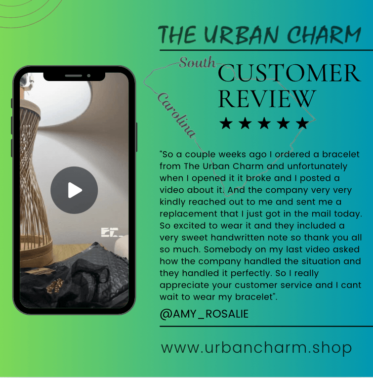 By making it a priority to address any issues our customers may face, we feel this is how we will continue to uphold our 100% customer service rating. Feel free to engage with our community and watch one of the HONEST video reviews here of how we handled a broken product return: https://flip.shop/the-urban-charm-silver-starter-charm-bracelet-by-the-urban-charm-24k-gold-dip-gold/reviews/amy_weintraub/3113a7b1