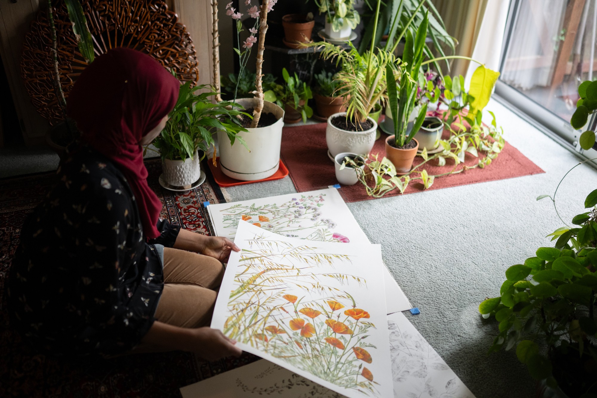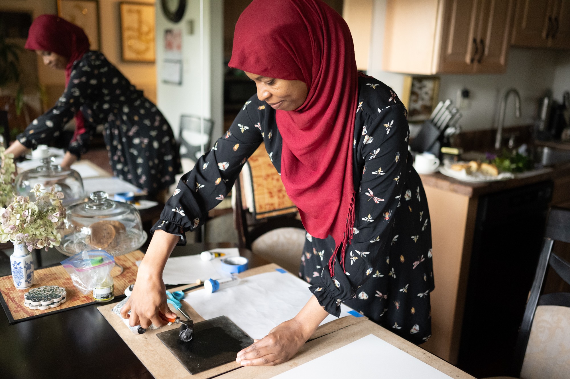 I create original hand-printed and illustrated botanical artwork, sell fine art prints, exhibit in galleries and museums, and lead hands-on workshops. What makes my work a little different is the way it weaves together all the parts of who I am. I’m a physician, an artist, a Muslim woman, a Nigerian-American, a plant lover, an educator, and someone who’s still learning. My creative practice integrates faith, spirituality, science, and storytelling through plants. Through this work, I collaborate with the community to (re)connect with the botanical world and (re)consider our relationship to it.