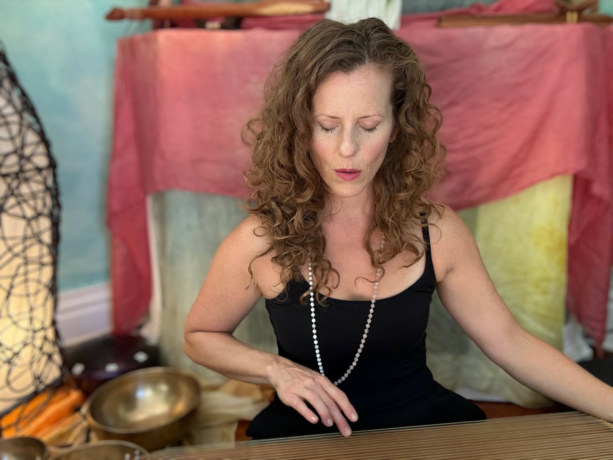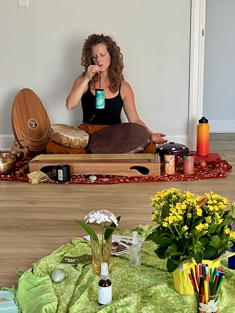 I took all of these myself, except for the shot of my doing group sound in what looks like a yoga studio. That photo was taken by Ana Paliza-Brown (leader of the yoga nidra.)