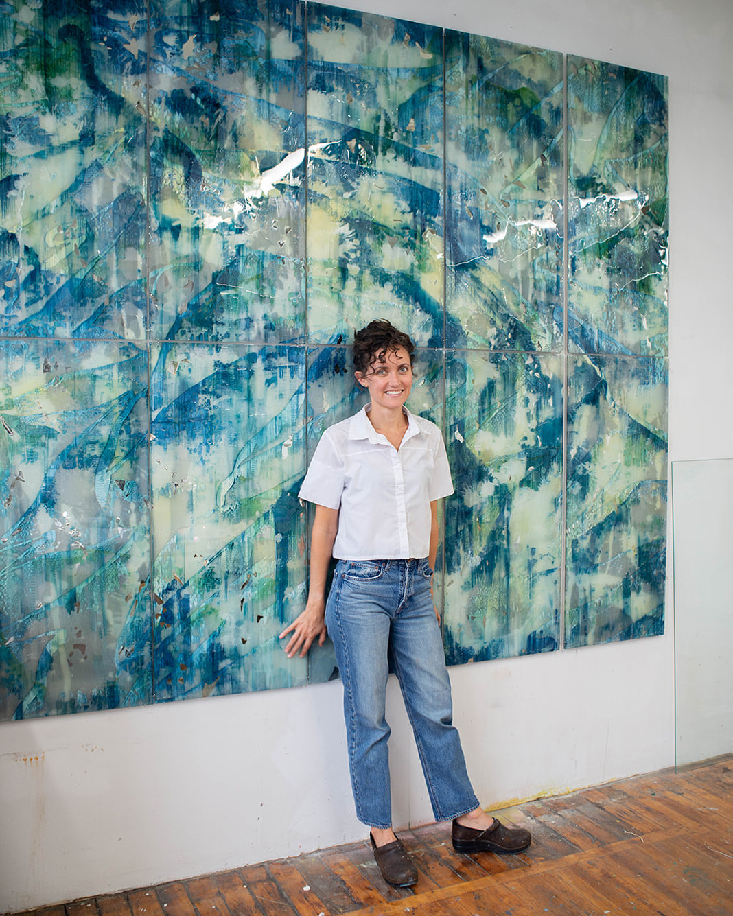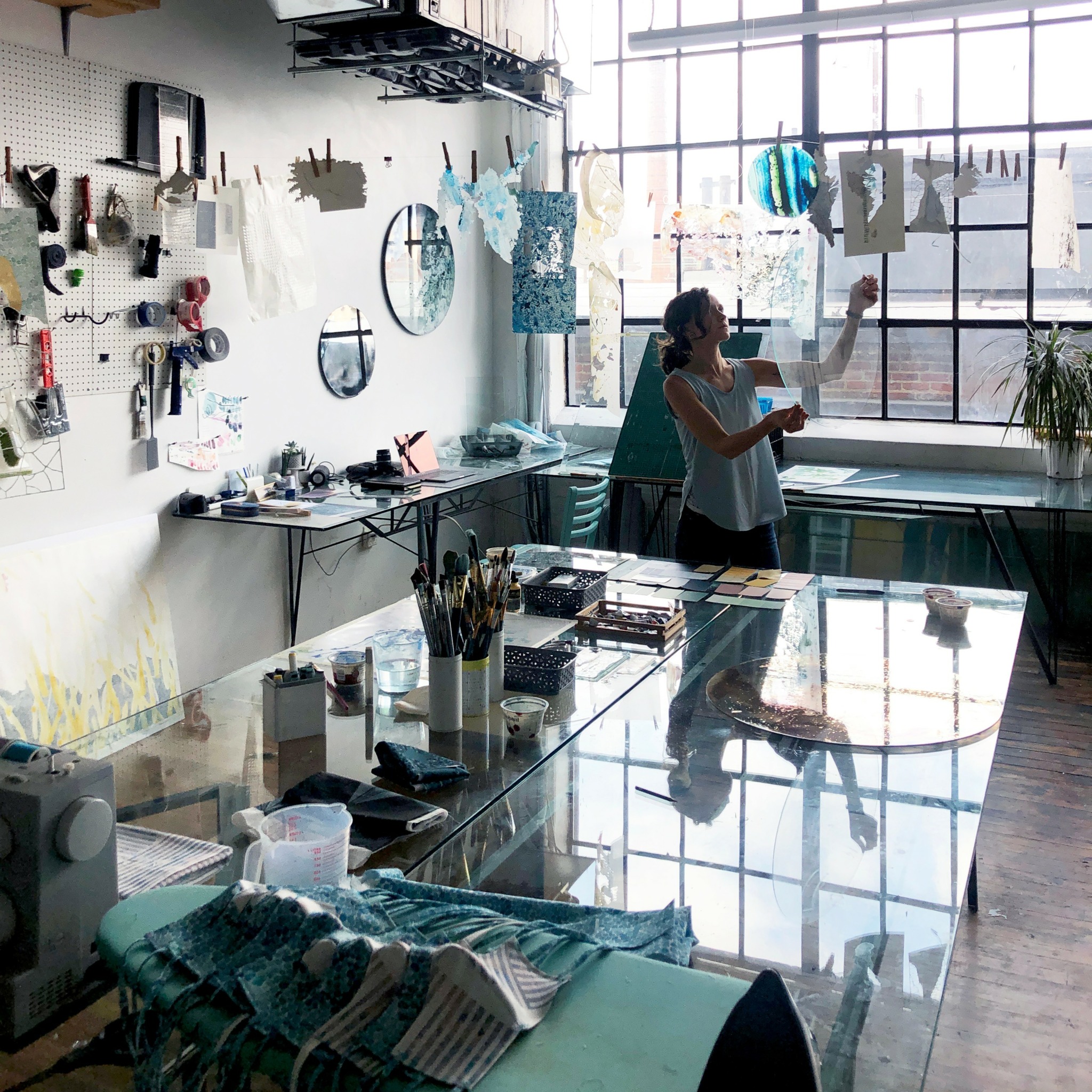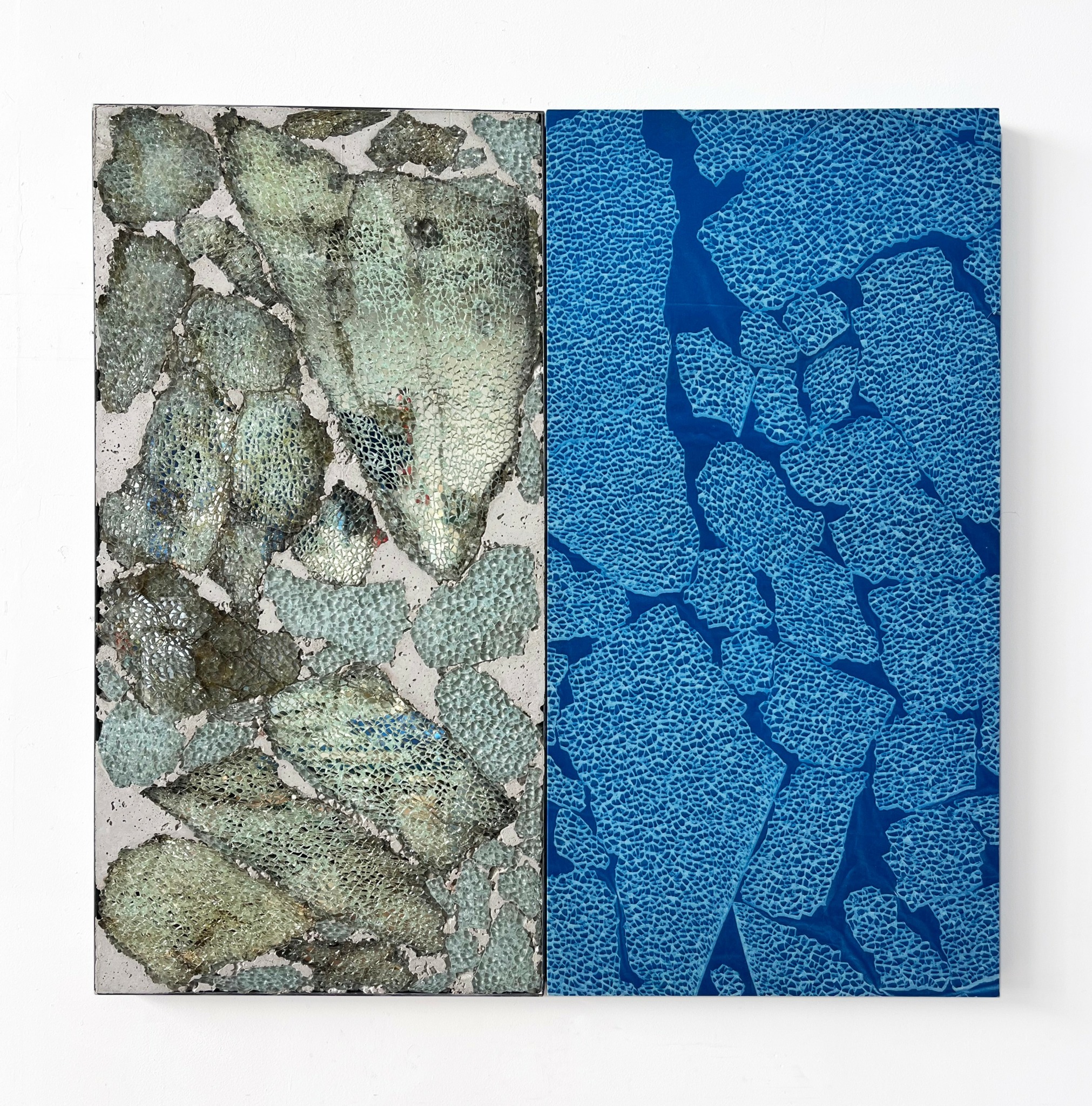 I am an interdisciplinary artist working in exhibitions and commissioned works. While I work with many materials, reclaimed sheet glass is the nucleus of my practice. Recycling centers in the US are not set up to process sheet glass and so millions of tons of it are taken to landfill every year. I love this material because it’s infinitely recyclable, a critical technology for modern life, and capable of harnessing light. In much of my work over the last decade, I have been using glass as a sort of canvas, manipulating it optically and layering translucent gestures with it. Recently, my research has been exploring the relationship between material ecology, place, and perception, with abstraction as a tool that translates, conflates, and upends these entanglements. While these investigations still include glass, they have also expanded to other architectural materials, like concrete and steel.