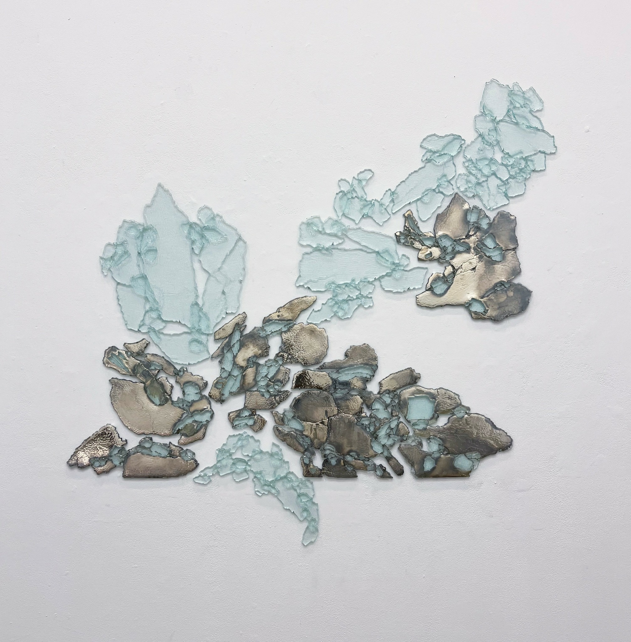 I am compelled by an urgency to ground images and information into the material world in such a way that creates an embodied experience and evokes a sense of awareness of the matter that moves in, through, and around human bodies. I think hyper mediation robs us of a sense of wonder and mystery and it sorts our world into binaries that flatten the true depth and complexity of people, places, and things. My aim is to take things that would otherwise be perceived as flat, like a panel of glass, and show its true vitality, even if at times it’s hard to understand. If you think about it, all images, whether they are representational or not, are abstracting our world in some way. I’m interested in the ways in which those abstractions reveal (like a map), or diminish. I think oscillating between image and object is not only compelling–it’s important for understanding the capacities and limits of each, which ultimately helps us to navigate a world of shifting ecologies and perspectives which are ever fragmenting, compressing, and expanding.
