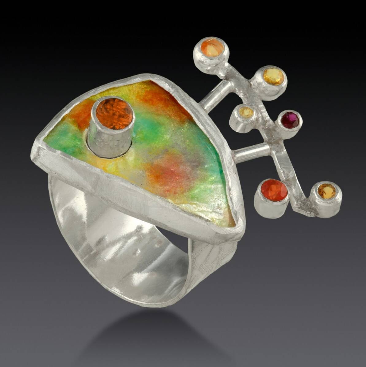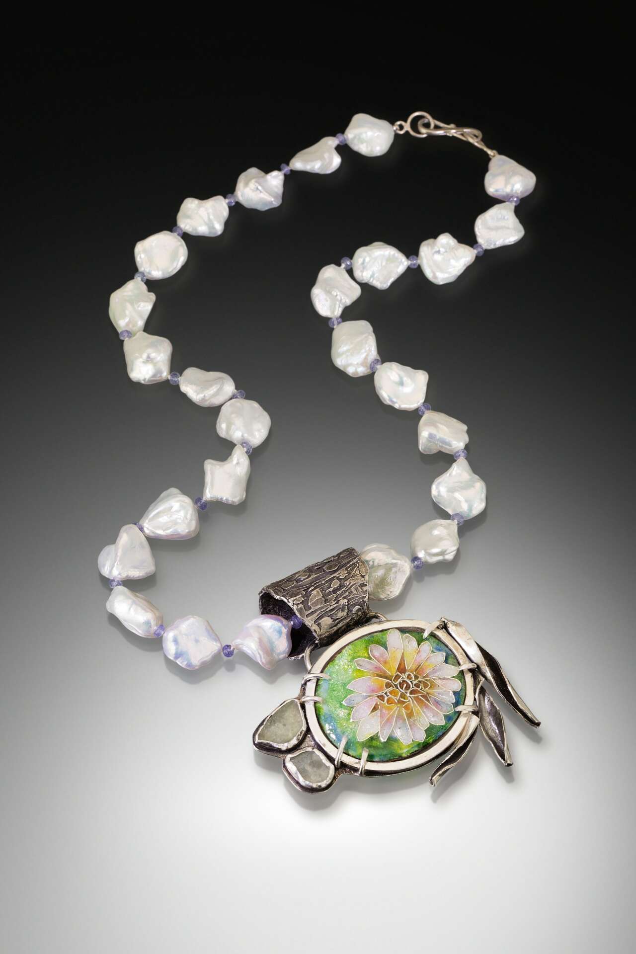 When I was able to gain studio space again, I invested in an enameling kiln and began to explore techniques in enameling to include in the next generation of my jewelry designs.