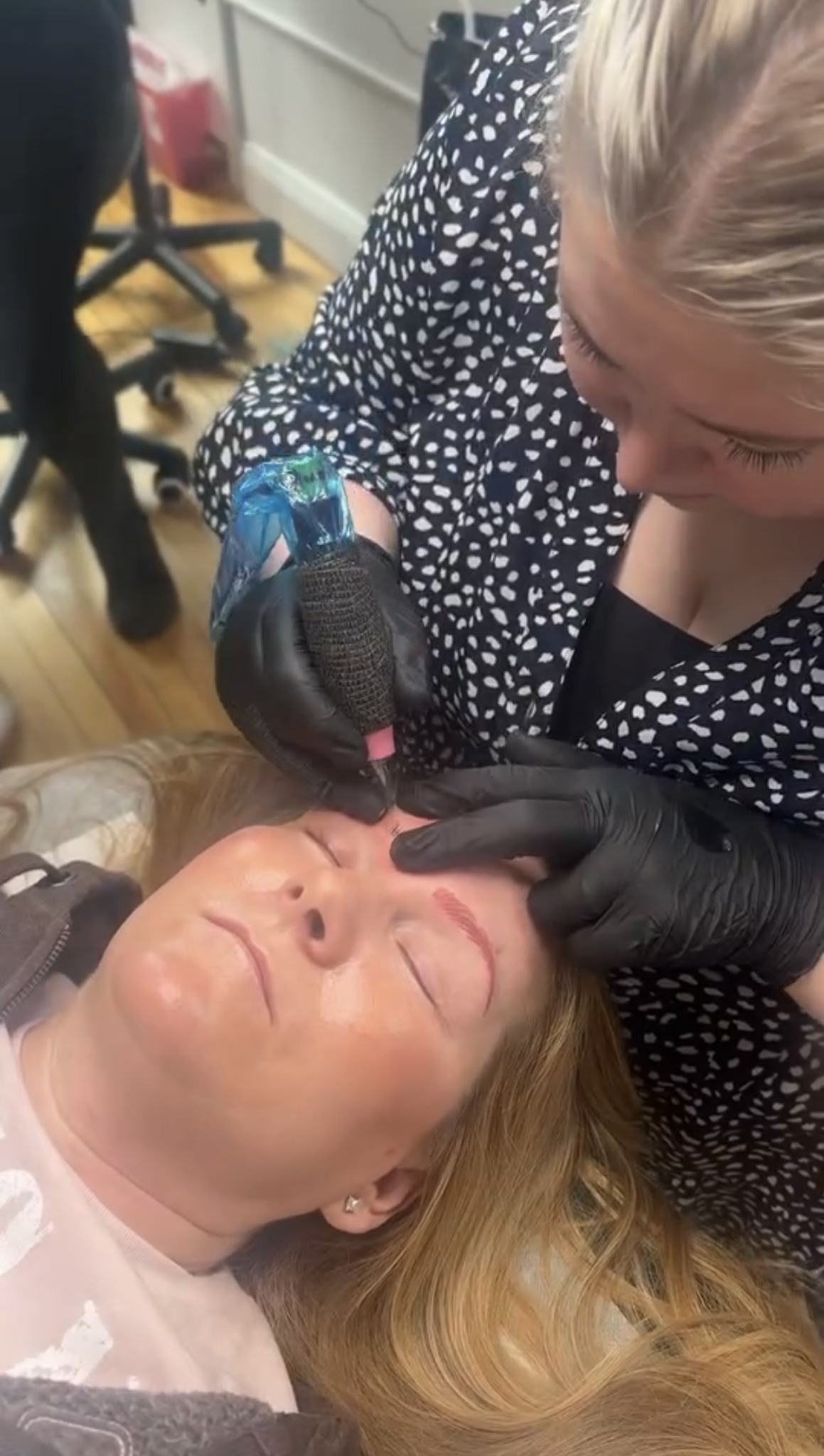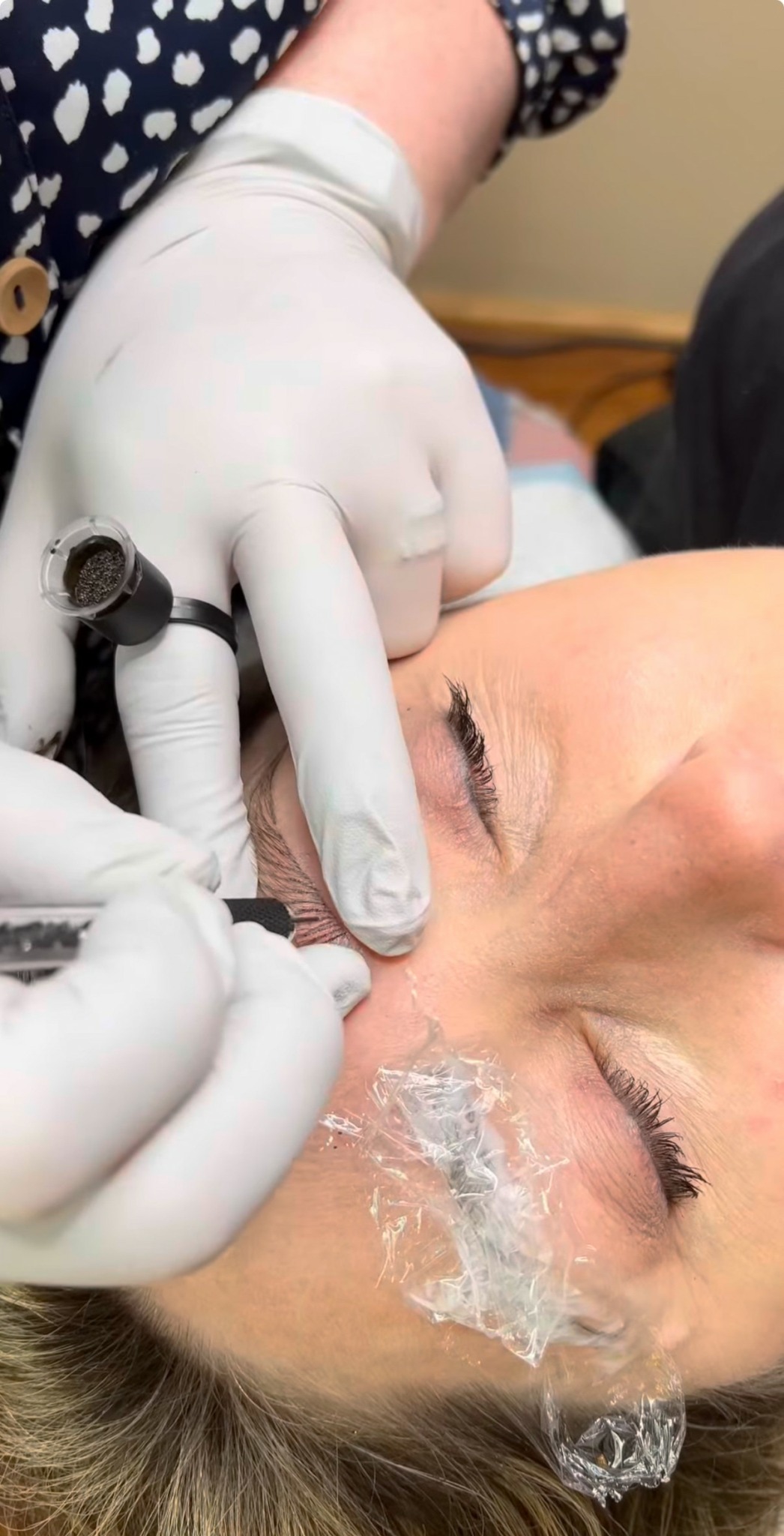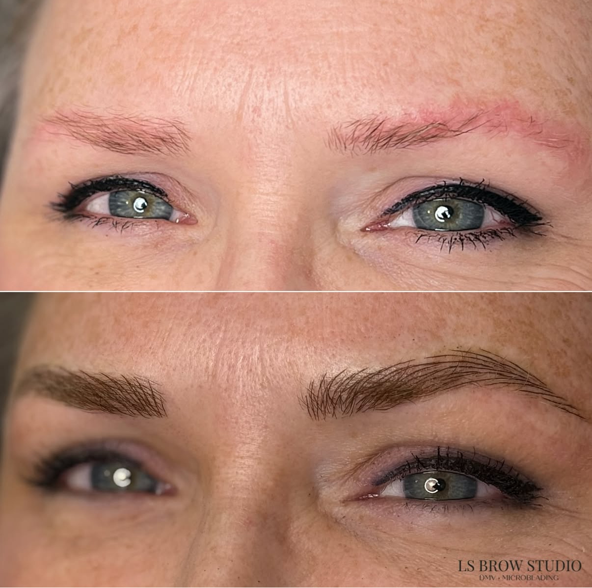 I’m Laura, owner and microblading artist at my studio, LS Brow Studio in Shenandoah County, VA. I opened my permanent makeup business in 2022 and I am forever grateful for each client that has come to me, still comes and all of the new ones that will come and see me! My focus is on very natural eyebrows. I use both microblading and nano to achieve natural results for my clients. Microblading is much like it sounds, there is a tiny blade comprised of tiny pins that create a “micro blade” in which I use to create hair-like strokes in the skin. I also use a machine that is similar to a tattoo gun, but less invasive and less permanent than a tattoo because I do not work as deep in the skin. The machine will have a needle on the end that creates tiny pixels in the skin that are layered to create an individual hairstroke. I am able to build beautiful brows with these two tools.