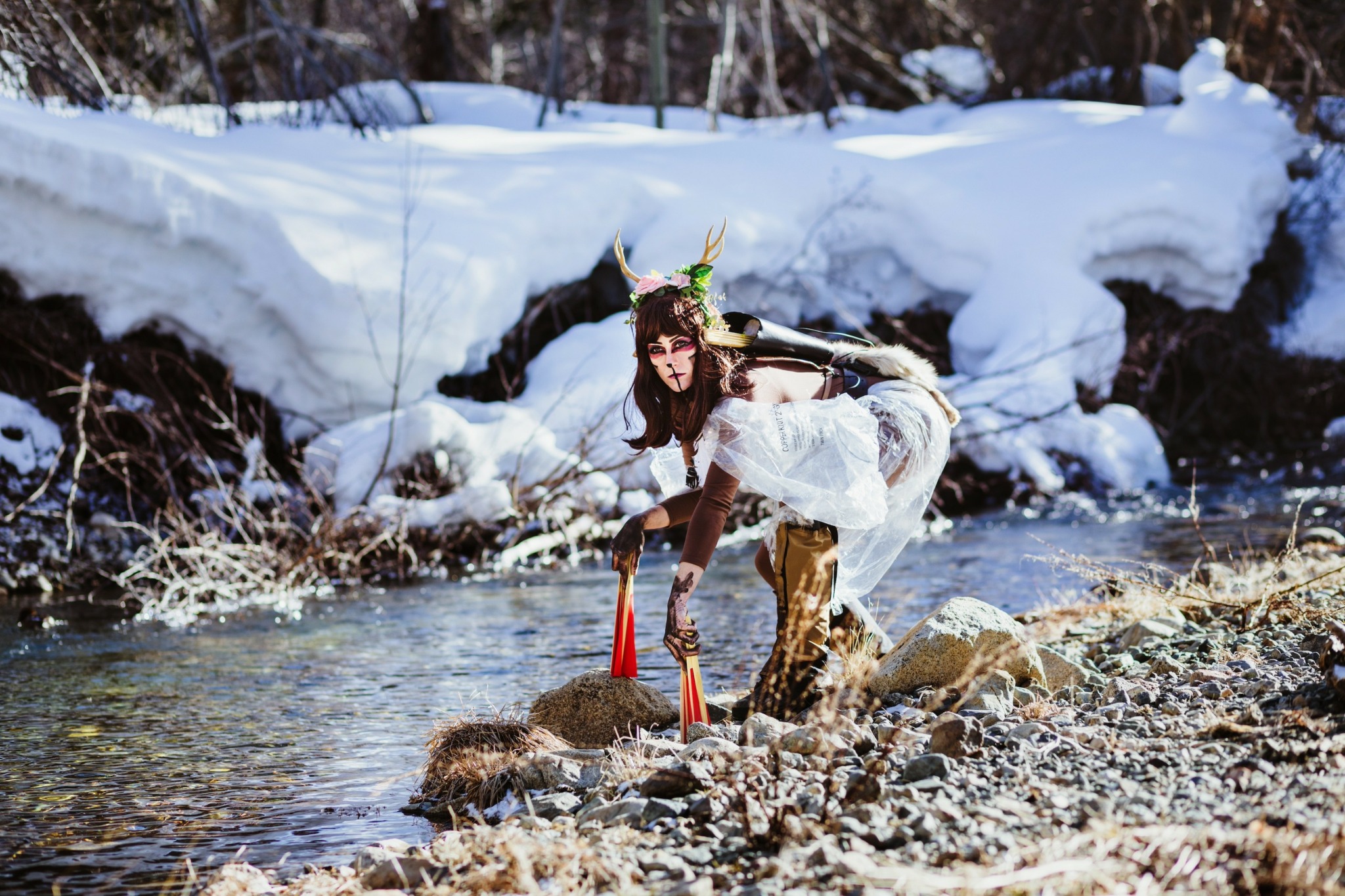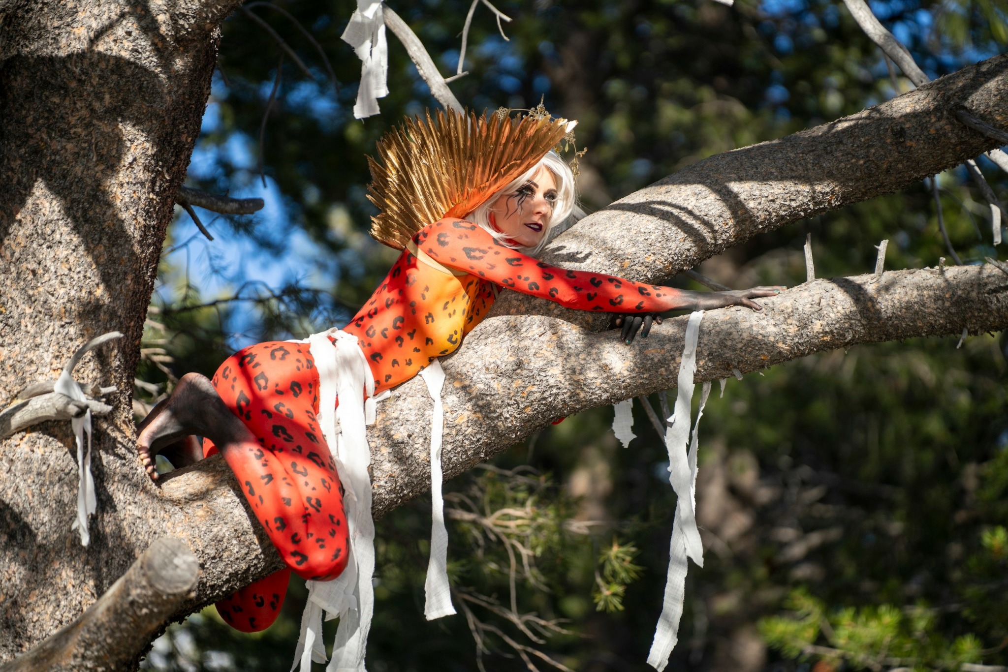 “Feather” has travelled the world as a circus pole acrobat, performing in Los Angeles, Las Vegas, Chicago, Beijing, Portland, New York, San Francisco, Minneapolis, New Orleans and Amsterdam. She specializes in eco-feminist pole performances. Utilizing a series of personas, each character is expressed through a unique combination of makeup, biography, story, costume, and music.