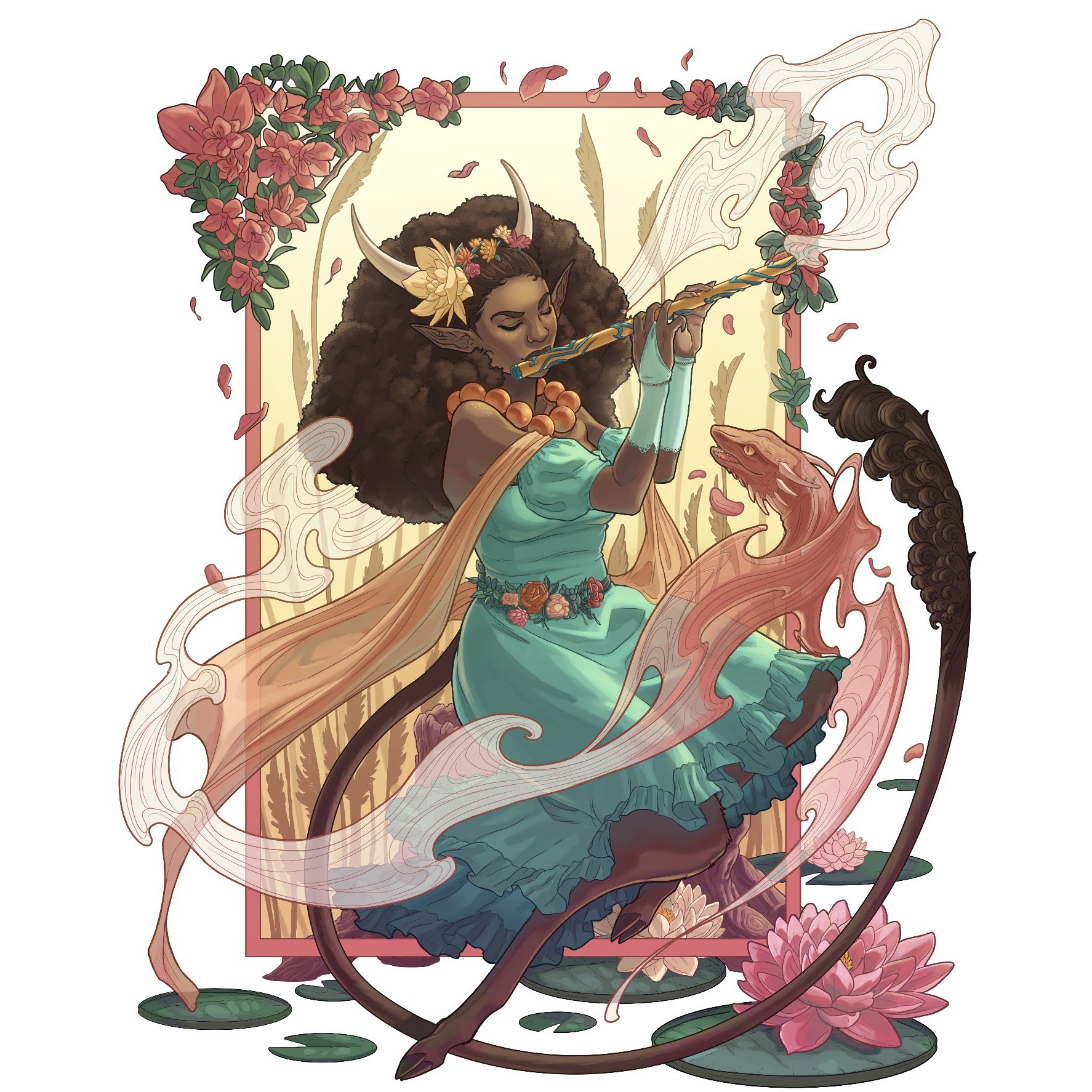 I am a whimsical fantasy illustrator and Art Director. I have always been inspired by cartoons, video games, and anime, especially magical girl shows and fantastical shows. I grew up always drawing and making up worlds. My parents were fully supportive: My mom enrolled me in various art and animation classes, and my dad, who used to be a fashion designer, encouraged my love of nature and fashion (though he never taught me how to sew! Still annoyed about that!)