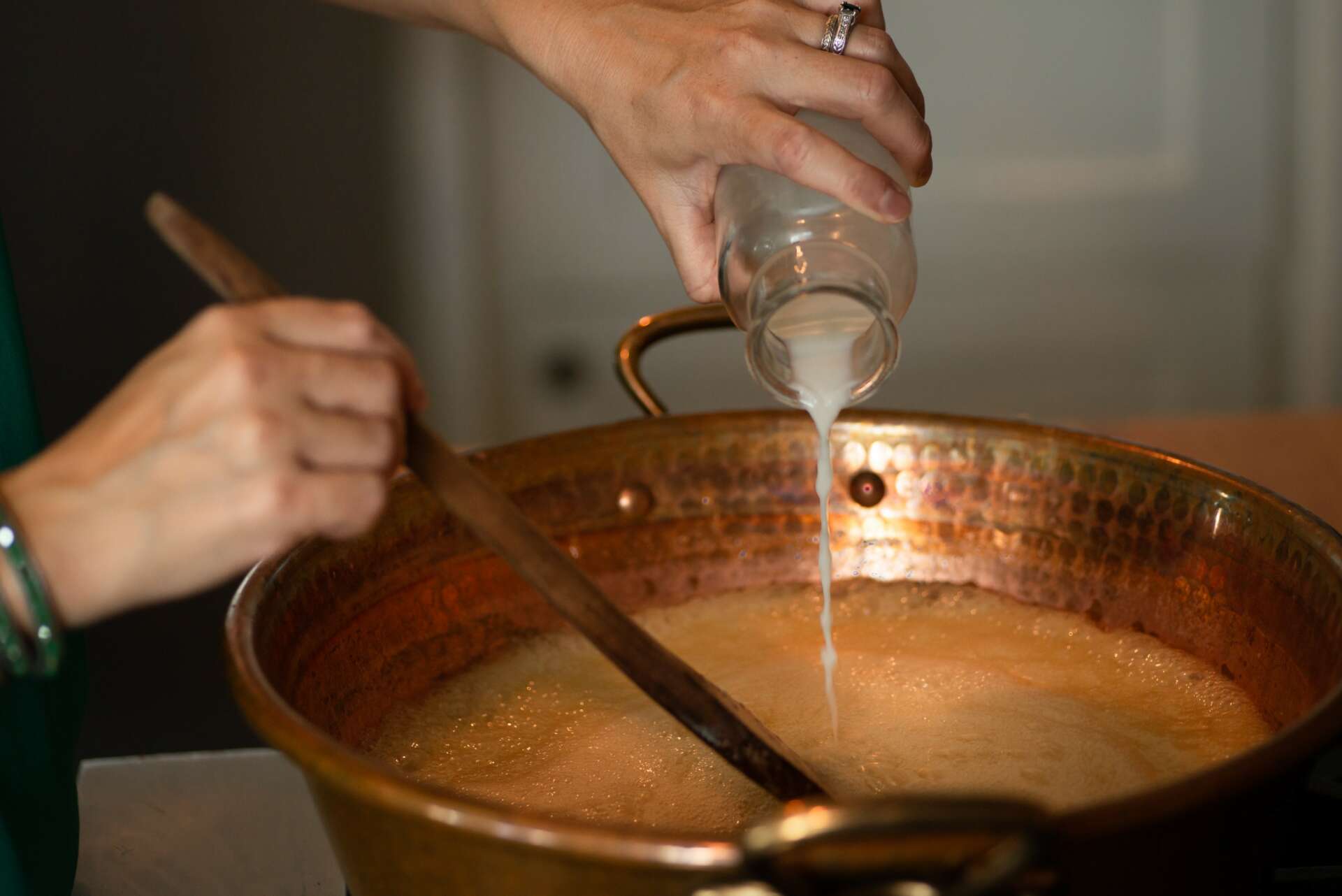 Our caramels are handmade and handcrafted, not manufactured. They are made in small batches in copper cauldrons using wooden spoons to occasionally give a stir. We hand wrap each caramel. There isn’t a manufacturer or copacker that I would trust to go to the lengths we do in ensuring our product is made exactly as we do. Our production takes place in our kitchen located at The Jolly Good Shop. Our primary production team consists of myself and my full-time pastry chef, Lexi Geronimo.