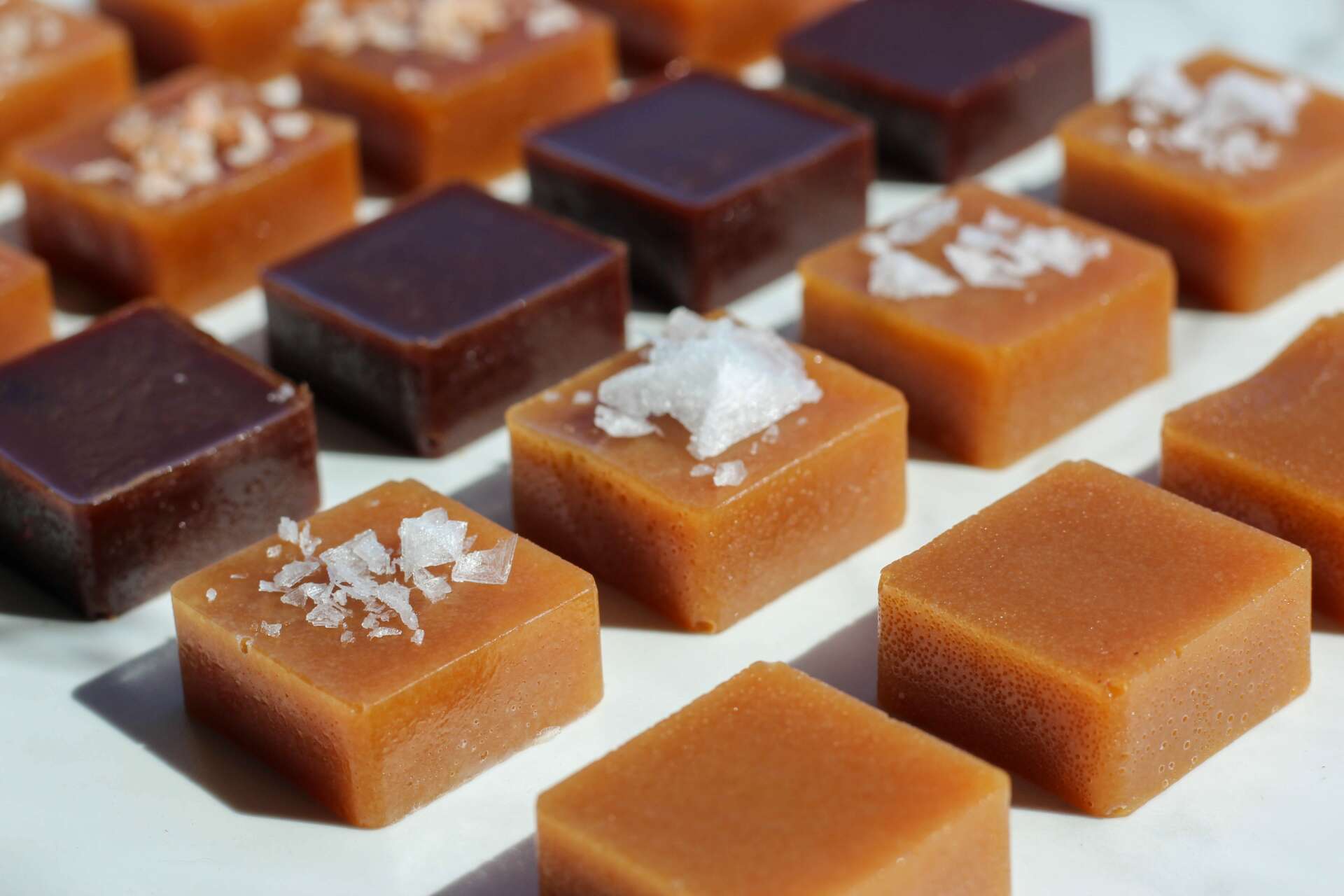 Our caramels are handmade and handcrafted, not manufactured. They are made in small batches in copper cauldrons using wooden spoons to occasionally give a stir. We hand wrap each caramel. There isn’t a manufacturer or copacker that I would trust to go to the lengths we do in ensuring our product is made exactly as we do. Our production takes place in our kitchen located at The Jolly Good Shop. Our primary production team consists of myself and my full-time pastry chef, Lexi Geronimo.