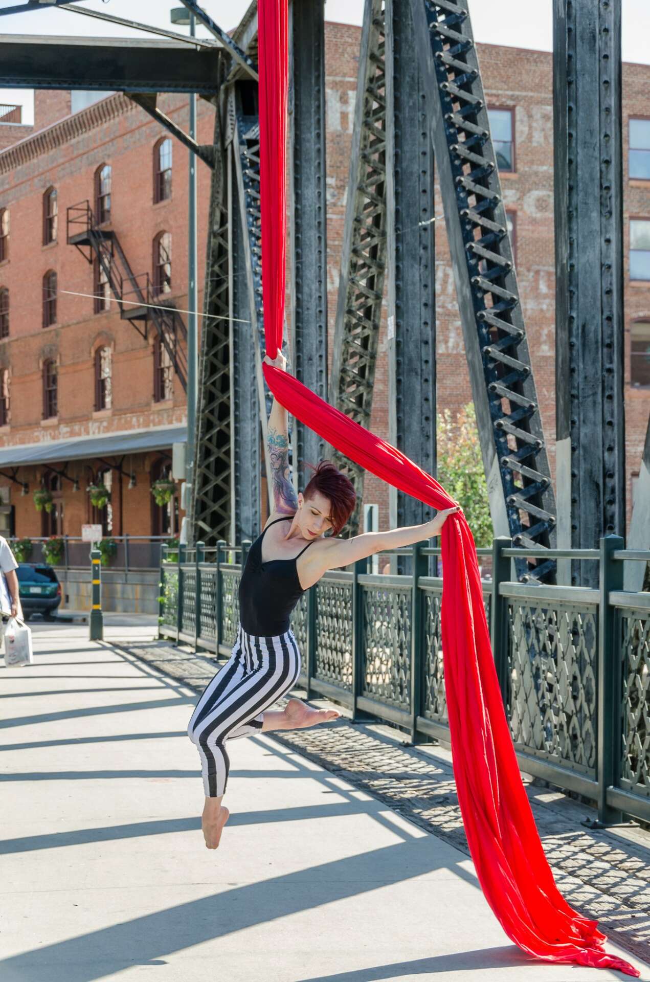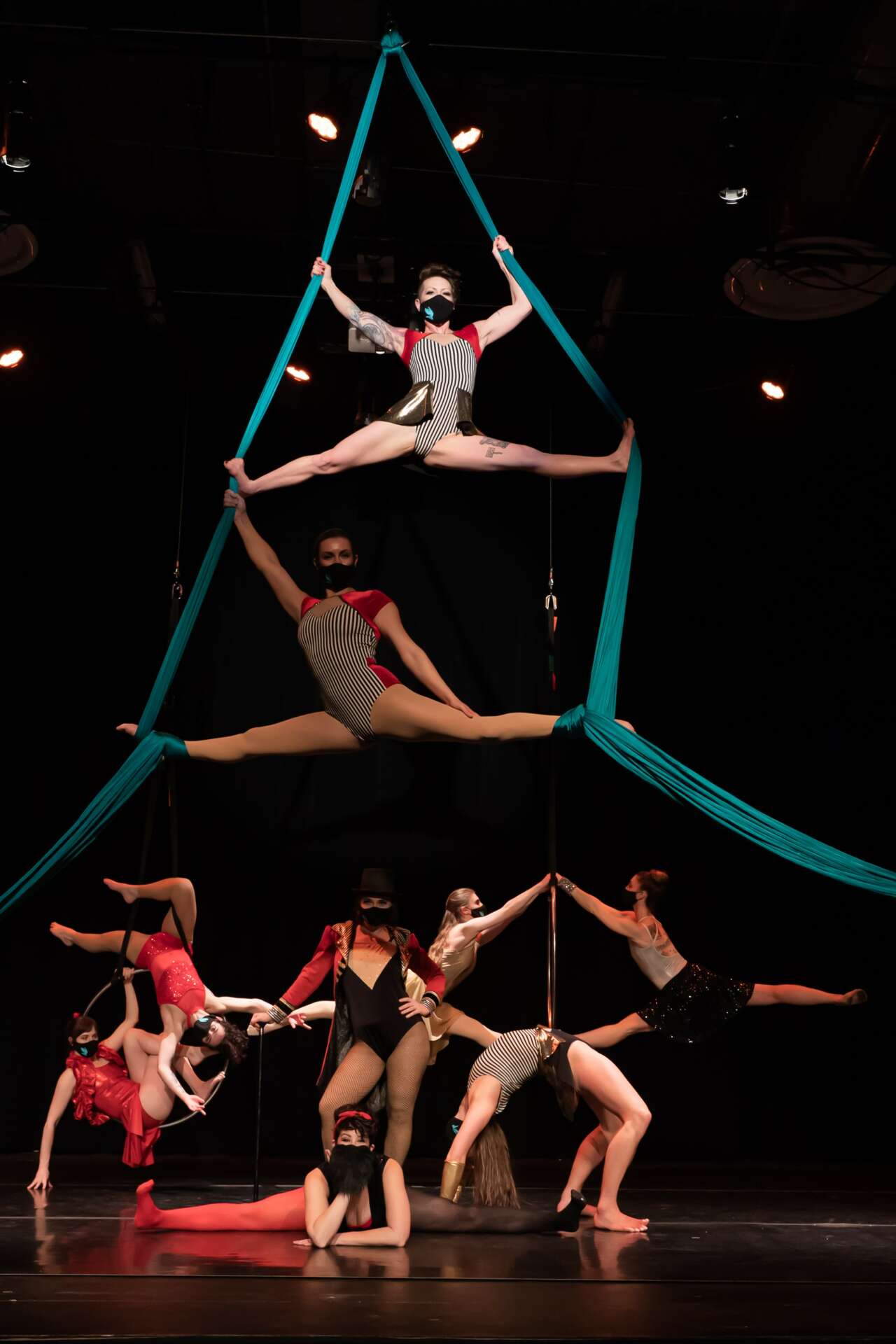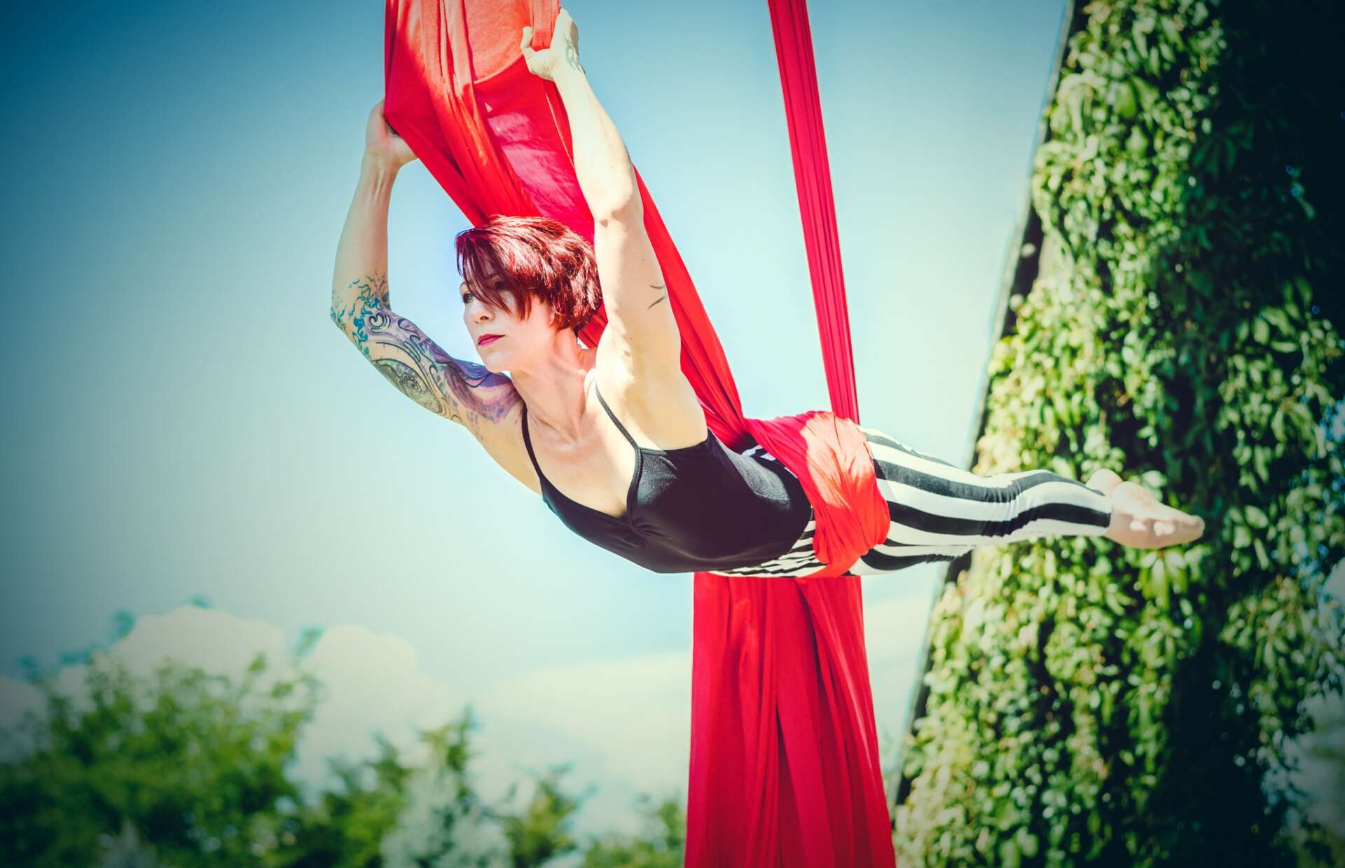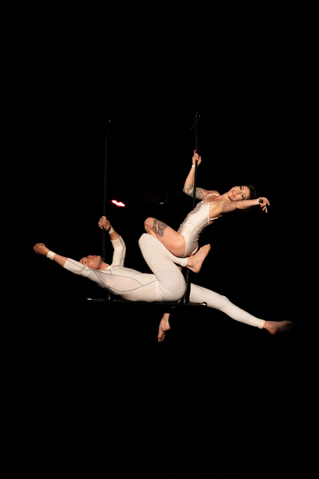 My entertainment services include aerial entertainment, partner acrobatics, & stilt-walking. My coaching services are focused on aerial silks & duo-trapeze, but I also offer lessons on other aerial apparatuses as well as partner acrobatics.