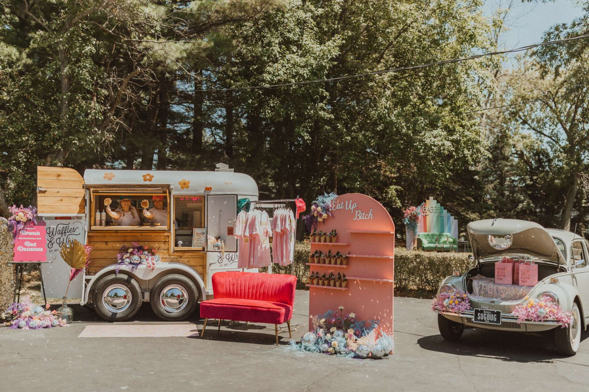 I really noticed a need in my community for dessert/breakfast food trucks. I knew also wanted my food truck to be unique not your typical food truck. Something that was instagram able and chic that made people want to book us by just looking at it regardless of what we offered inside of it! However, I also wanted to be unique it what we were offering. My last name is “Wafful”so it was a no brainer that I need to do waffles but not your typical waffles, liege waffles. Also, in Iowa we like our food on sticks, so I knew that was absolutely going to happen. I’ve created a very well known brand across central Iowa. While we mainly focus on private events we occasionally throughout the year will do a few pop ups where we are open to the public to come try us out!
