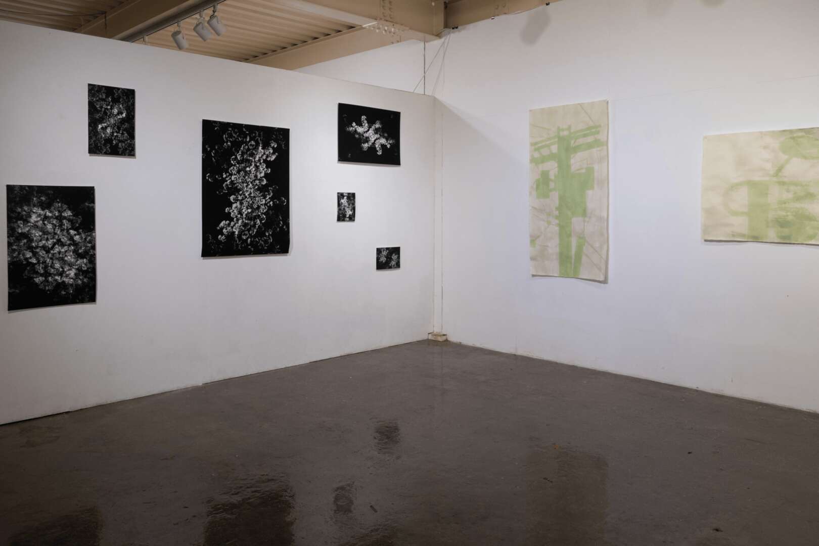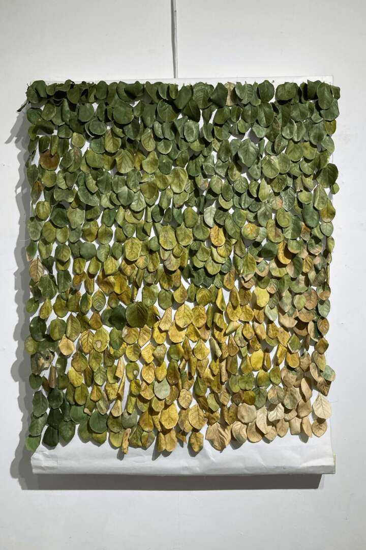 The work in progress photo of the pavement floor with leaves with my hand on the right corner is taken by photographer Beier Xie.