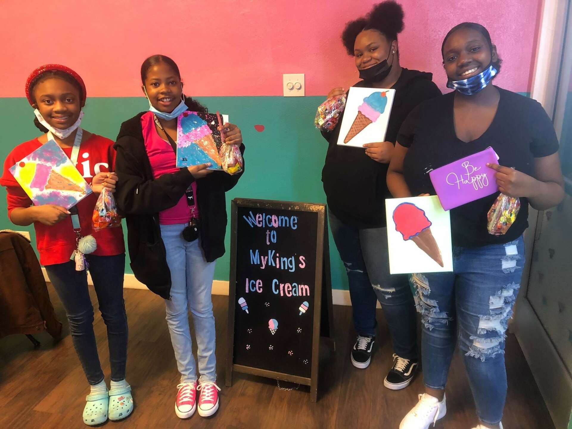 My name is risk taking LeDay Grant. If you don’t step in the rain, how do you know if you’ll ever get wet? I noticed a FOR RENT sign! Pray and claimed this location as my ice cream shop. And then there was MyKings IceCream. It wasn’t easy. Long months preparing to open a legit and legally ran business. We are a unique, fun, and a community based ice cream shop. We are specially know for our specially crafted milkshakes. My favorite is pretty much all of them. If I had to choose it had to be golden Oreo with s’mores cereal. Yummy! Our mission is building the community one scoop at a time. We provide a fun place to create memories and also we teach lessons through Deloris treats. We teach financial literacy to who ever what’s to learn, we are community based and we support the youth to grow and become great leaders/individuals. Check out one of our Lick and Paunt events. Enjoying ice cream while painting a take home canvas. I love our annual youth Entrepreneur event that we have every year in august. We get youth as young as 3 up to the age of 23 together that create their crafts and have an event that builds their confidants in selling those items. We also partner with non profits to help us meet our goals and needs to support our youth. Feeding the youth, backpack drives, gifts cards, and more. Building the youth to become what ever they chooses to be. I also love hiring youth in the summer teaching and training them customer service skills. What sets us apart from others is we treat everyone like our family. I’m most proud of not giving up!! Not giving up on myself! Not giving up on my business, not going up on something I started. I love the fact that when a person works at my shop they learn many skills to add to their list of life skills. I want to be an example. I have a lot of leftovers that I’m not ashamed of! I want youth to look up to me and determine their own walks of life through a troubled kid that turned her life around! We have been in business two years and counting with outstanding customer reviews, continued support, and business rapidly growing!