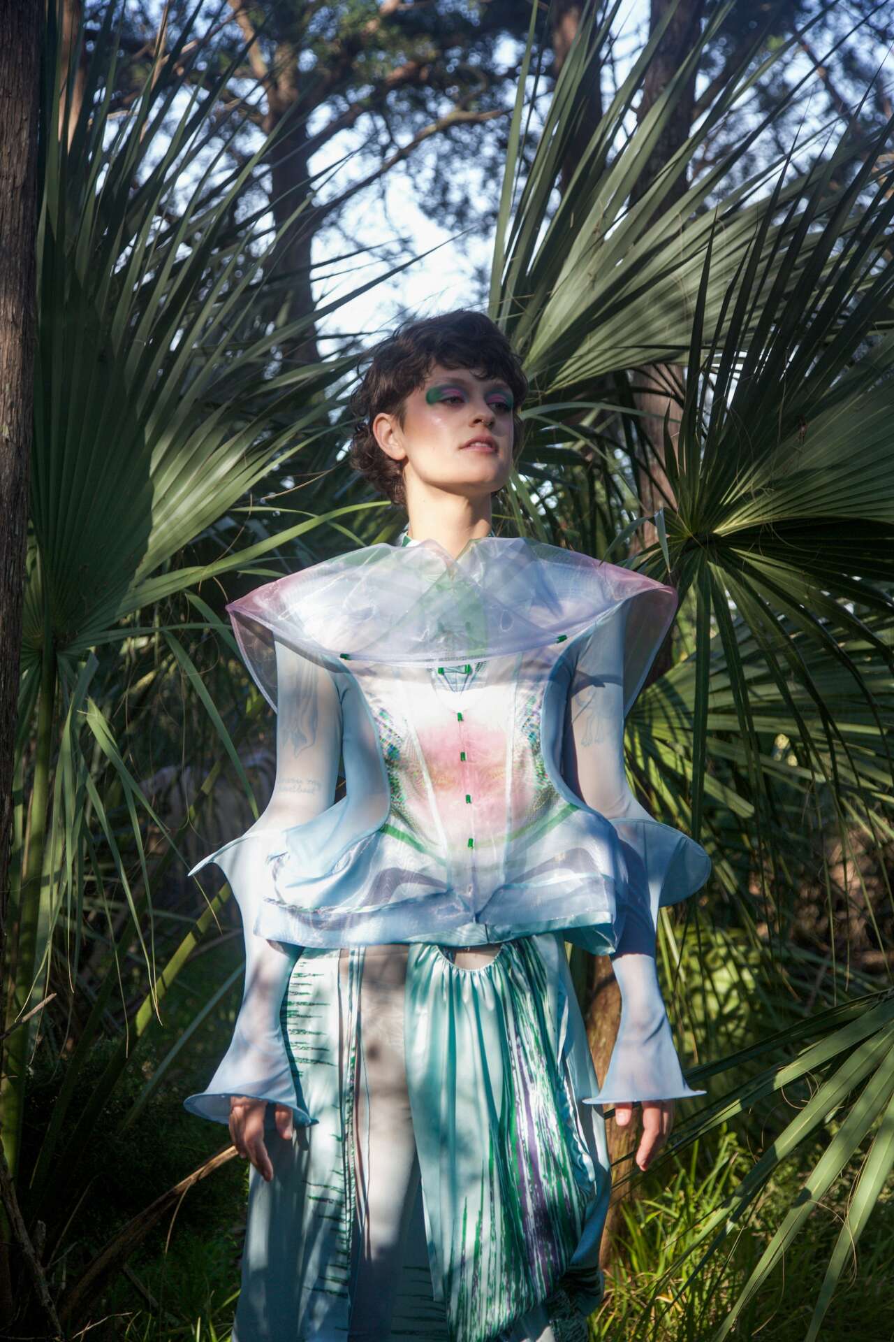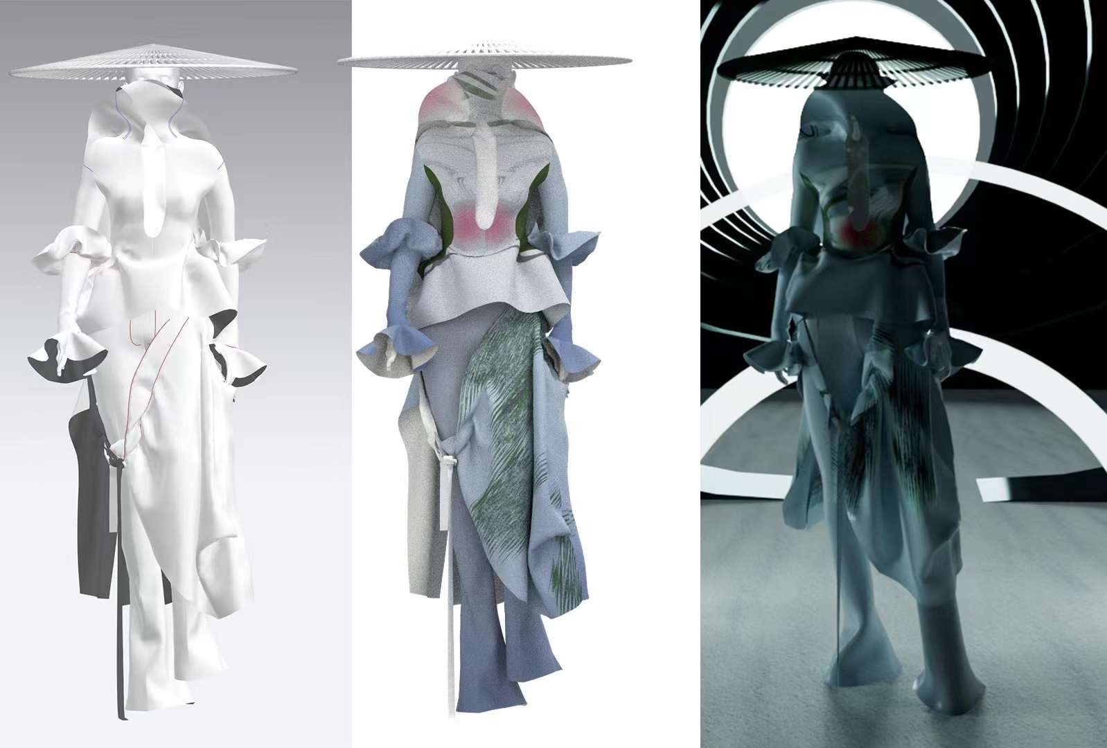 Global epidemic broke out after I entered SCAD, but often opportunities come with crises. It was in this context that I was introduced to virtual clothing. I began to understand in depth what virtual fashion is and how to realize a set of virtual fashion. It was so different from traditional fashion that one second I had a sketch of inspiration and I could immediately simulate my design through modeling software. It’s like going from a 3G network to a 4G network, my ideas don’t need to go through a long process of pattern making, production and communication to be shown. It’s a disruptive change. I immediately fell in love with virtual clothing. Eco-friendly and sustainability are the most attractive aspects of virtual fashion. The traditional apparel industry has serious ethical issues, environmental pollution, squeezed labor and wasted resources are all issues that all those involved in this industry are trying to overcome. The development of virtual technology has provided the apparel industry with a new way of presenting itself. Apparel designers can realize the entire design process through a single computer, no longer limited by materials and space.