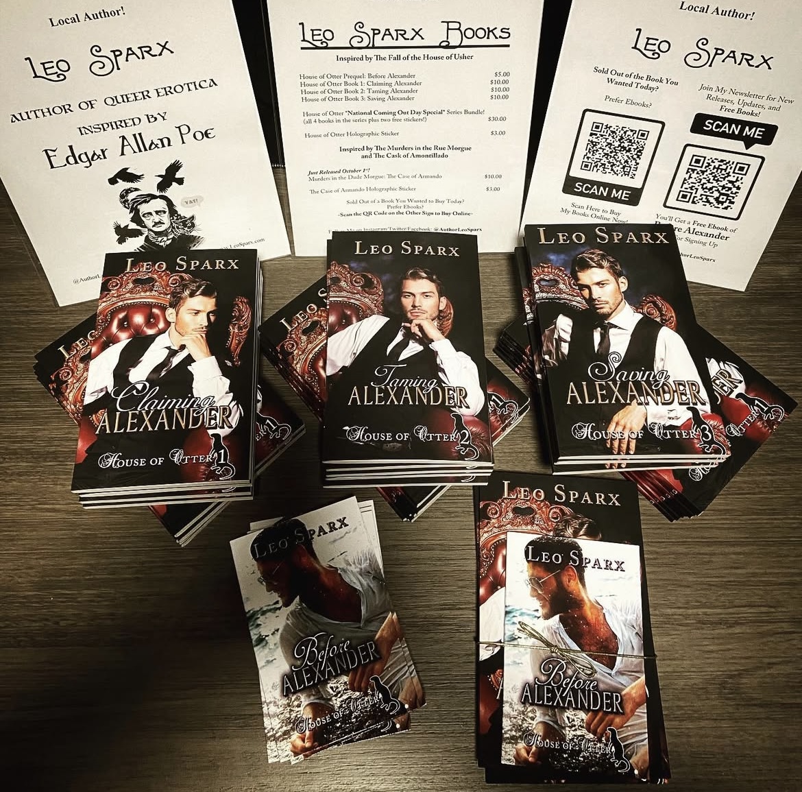 I’m Leo Sparx, an author of steamy queer romances inspired by Edgar Allan Poe. My stories blend gothic mystery, dark humor, and unapologetic heat, making them accessible to both fans of Poe and anyone looking for a unique romance.