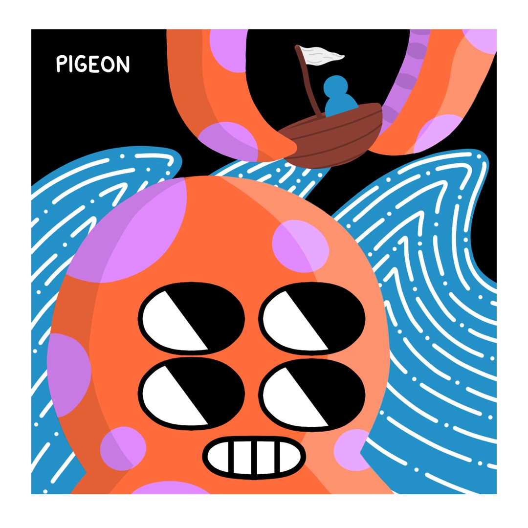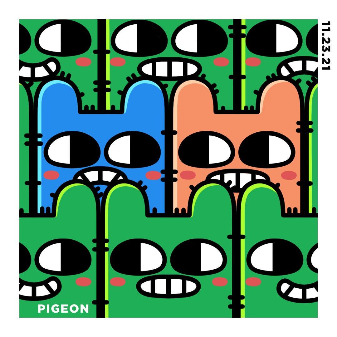 Im PIGEON aka Leo, i like to paint these characters that are either expressing joy, nervousness, or anger, in these colorful situations. i love minimal art and i love exploring feelings. I explore that with shapes and colors and bring these figures to life :) For the most part i translate these characters i paint into mascots to add on garments and run a clothing brand that way. Its a world im slowly creating and hopefully in time there will be enough of it to exist around me.