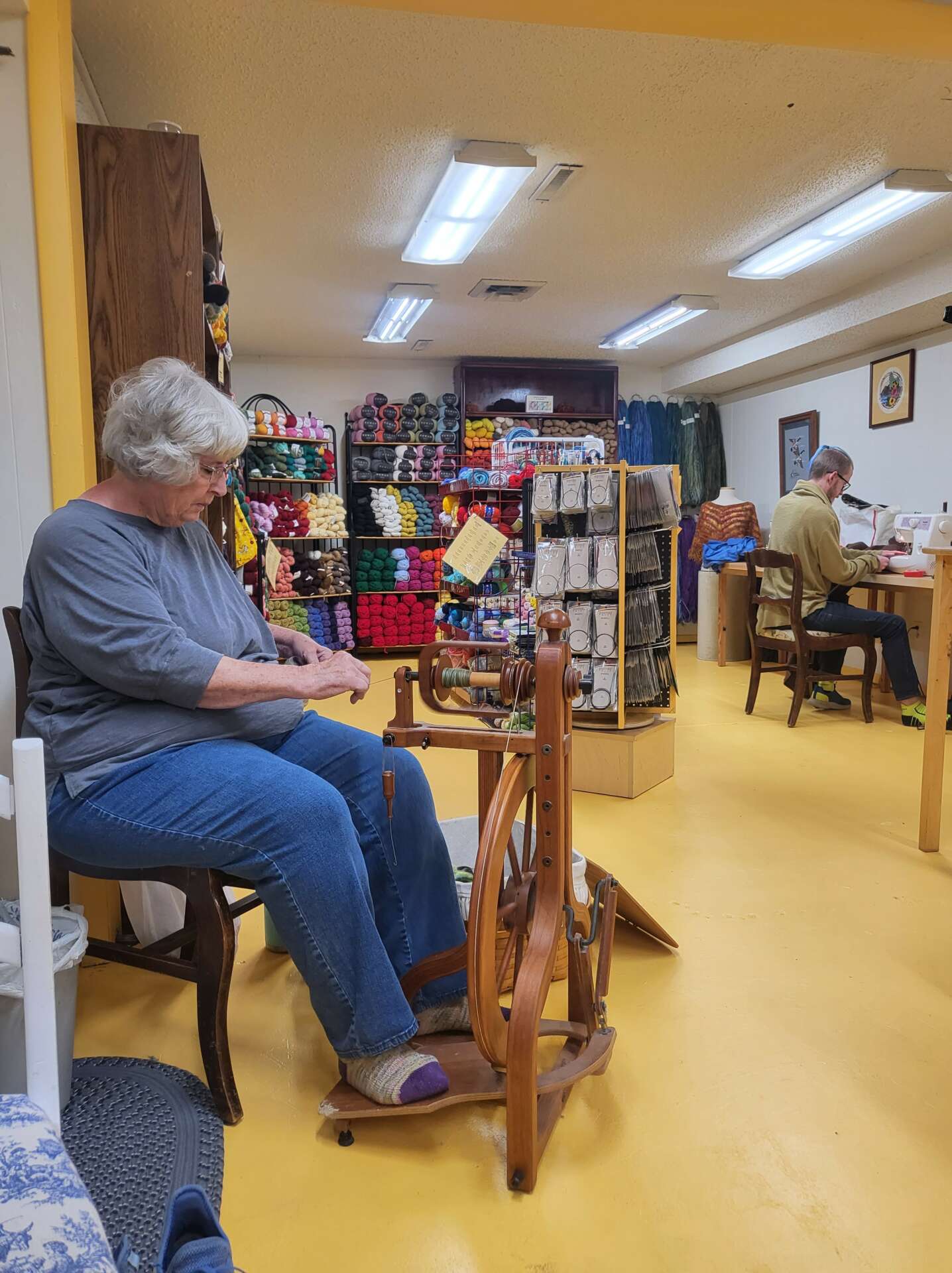 One day in 2021 Lesli and I were out shopping for clothes (since we’re a mother/daughter team), and she told me that she’d dreamed about having a yarn shop since she was 12 years old. At that time I was trying to figure out how to support myself and my husband without working for a corporation, so I jumped on the idea! We talked for months about what we actually wanted to be. Yarn shop? Makers’ space? Just classes? How are we going to break the mold of yarn shops?