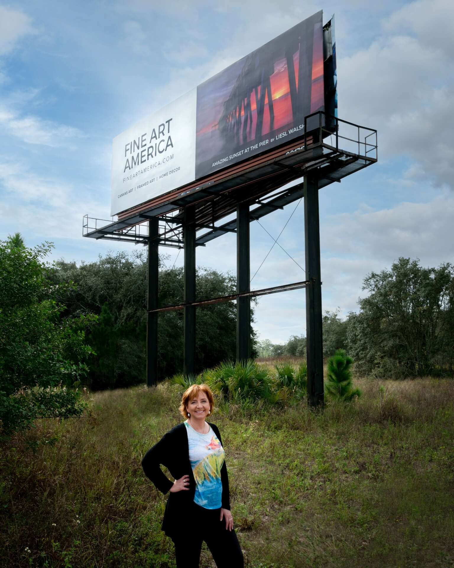 I also won the billboard contest on Fine Art America two years in a row. In 2021 my photo “The Most Amazing Sunset at the Pier in Venice, Florida” placed in the top 20 out of 24,341 images and 9,226 artists from around the world. This image hung on a billboard near Orlando, Florida for a month in November 2021. Then the next year in 2022 my photo “Liquid Light” placed in the top 20 of 17,456 images and 6,652 artists worldwide, and hung on a billboard in Clearwater, Florida in November and December 2022.