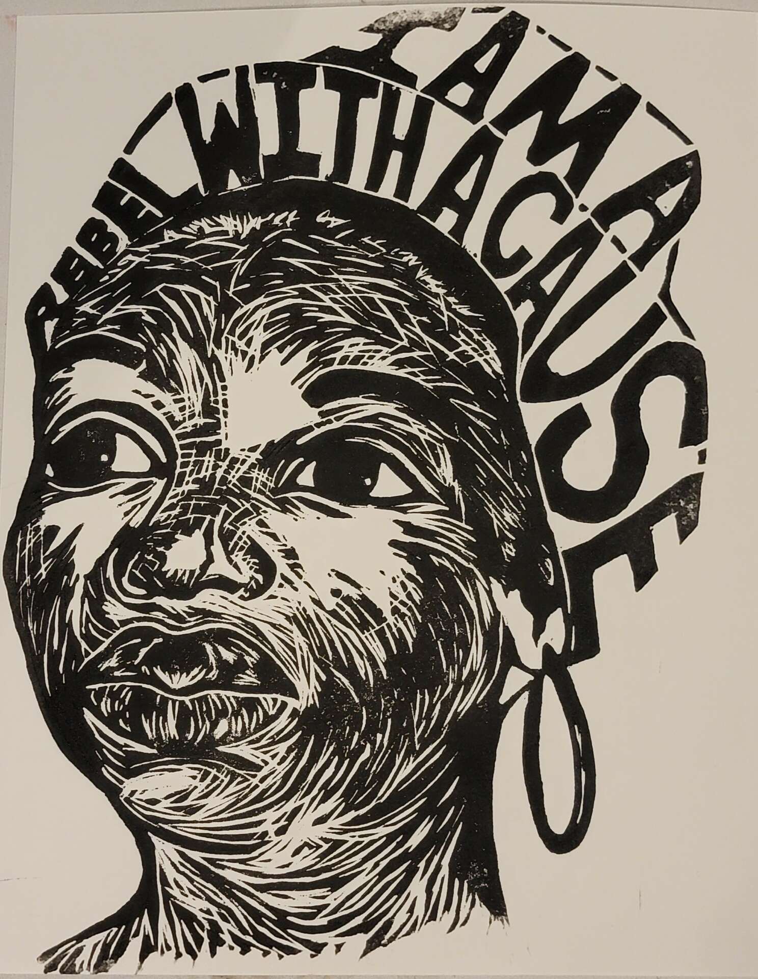 After Trevon, Martin’s murderer was acquitted for his death. I made an offhanded comment in one of my painting classes that his case was eerily similar to Emmett Till. None of the other students in my class knew who or what I was talking about, which, honestly shocked me. I didn’t understand how people could not know such a pivotal moment in American history, such as Emmett Till. From that one conversation, I created a painting that visualized the similarities I was seeing, and, the rest was history. I tend to tell people that I am a painter who lights as a print maker, since those are the two mediums, I use the most. But because of my art educational background, I am more of a multimedia artist, and I tend to use materials that fit whatever message I am trying to convey with my art. In my undergrad, I have an entire project that uses audio, and I had to edit splice and figure out how to to display that all of my own, luckily I had the skills and the building blocks to be able to do that. My knowledge and art making has actually been a blessing when it comes to my work in museum education