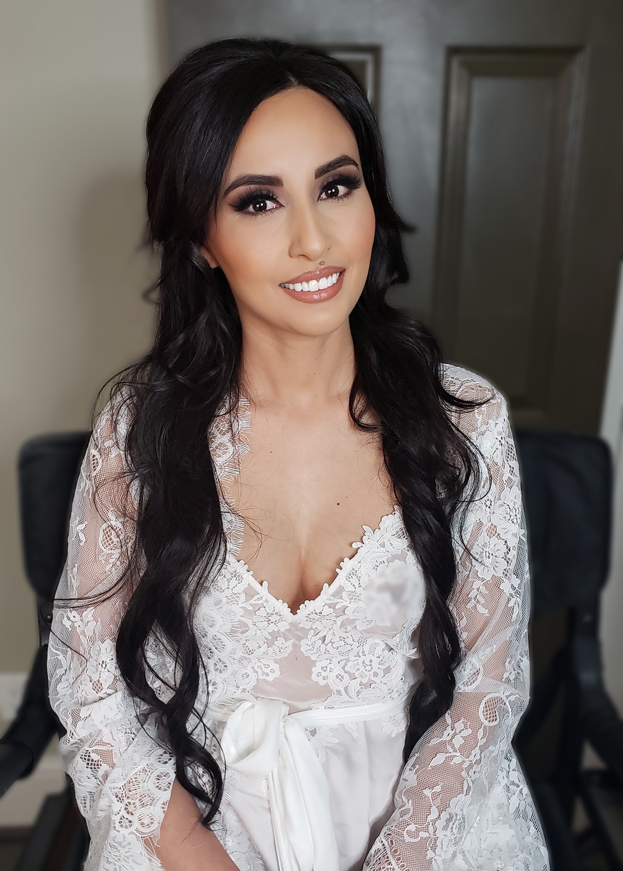 Being a makeup artist for so long, I was able to save a lot of money. I worked at MAC and freelanced here and there. I put away money and wasn’t a BIG spender. I think that sets me apart from so many people. I’ve always spent within my means. But being a very driven and hard worker makes a huge difference as well. I worked 7 days a week for almost 5 years. I was always making a lot more than I was ever spending. So when it came time to invest in my company, I had the money to do so. Something I always recommend to newer makeup artist or people wanting to re-brand is finding a great Brand Designer. You need a great logo and website. Another thing you need is a strong kit. Spend the extra money and buy professional products. Clients do not want to get their makeup done with a full face of drug store products. Sure a few drug store products like mascara and lip gloss isn’t bad, but trust me, invest in the GREAT stuff. Always come to the client with a director’s chair and of course a light. For me, it is important to have a glam studio for my clients. I have a ton of out town clients, so having a location is essential. I love having a glam studio that has beautiful lighting, a central location and aesthetic for the perfect selfie!