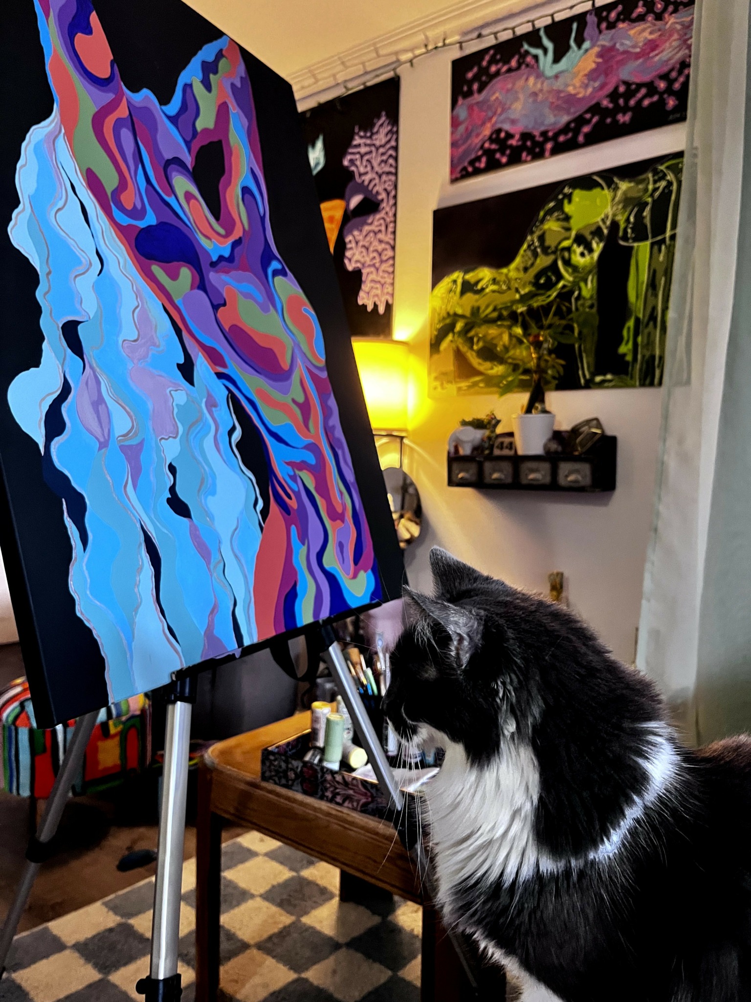 Finally, I just couldn’t take it anymore. I left the job and moved into a creative lifestyle. As an artist, I love it when each day brings something different. It could bring new connections, or a wave of inspiration that turns into a painting, or the chance to just get up and dance. Creativity is free-flowing, and it thrives when we give it the space in our daily lives to flow through us. It’s an essential part of my being. While the life of an artist is not traditionally “stable” as it would be with a typical job, the freedom, autonomy, and happiness I have experienced in building my own creative life are unmatched.