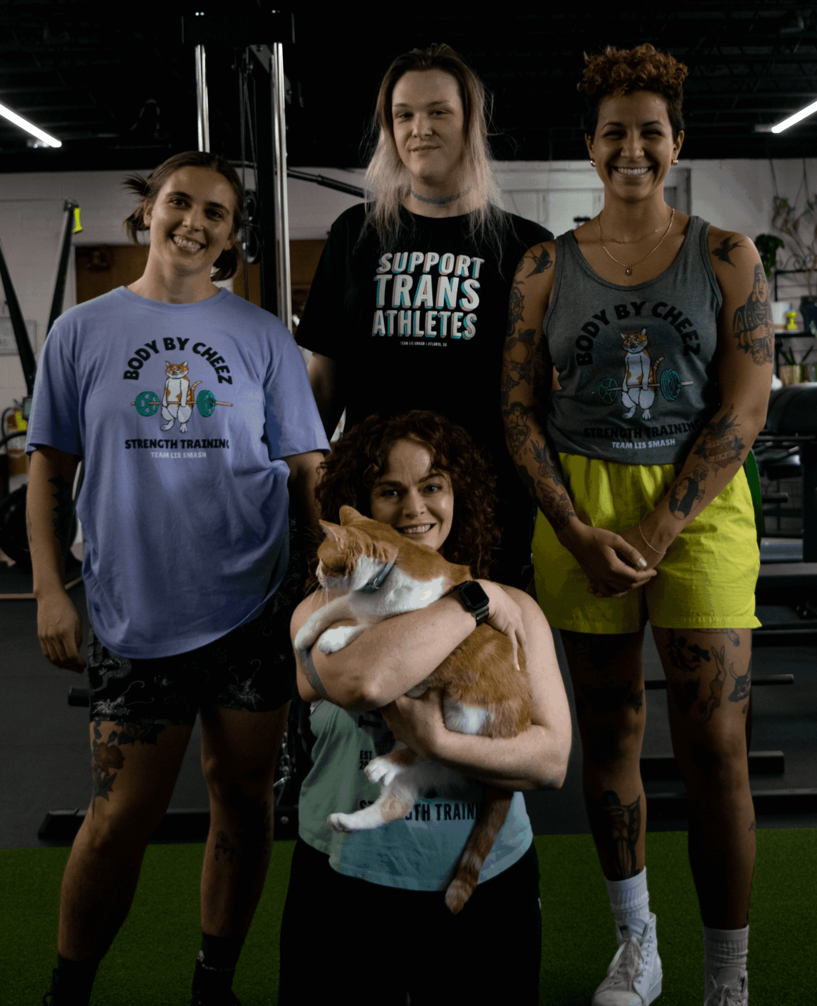 We have an unbelievable team of trainers with a variety of different specialties. We also have a gym cat! Part emotional support animal and part security guard, his is name is Cheez and he adopted us at our former gym location in Gresham Park. Now he’s our unofficial mascot. He lives in the office and patrols the gym all day.