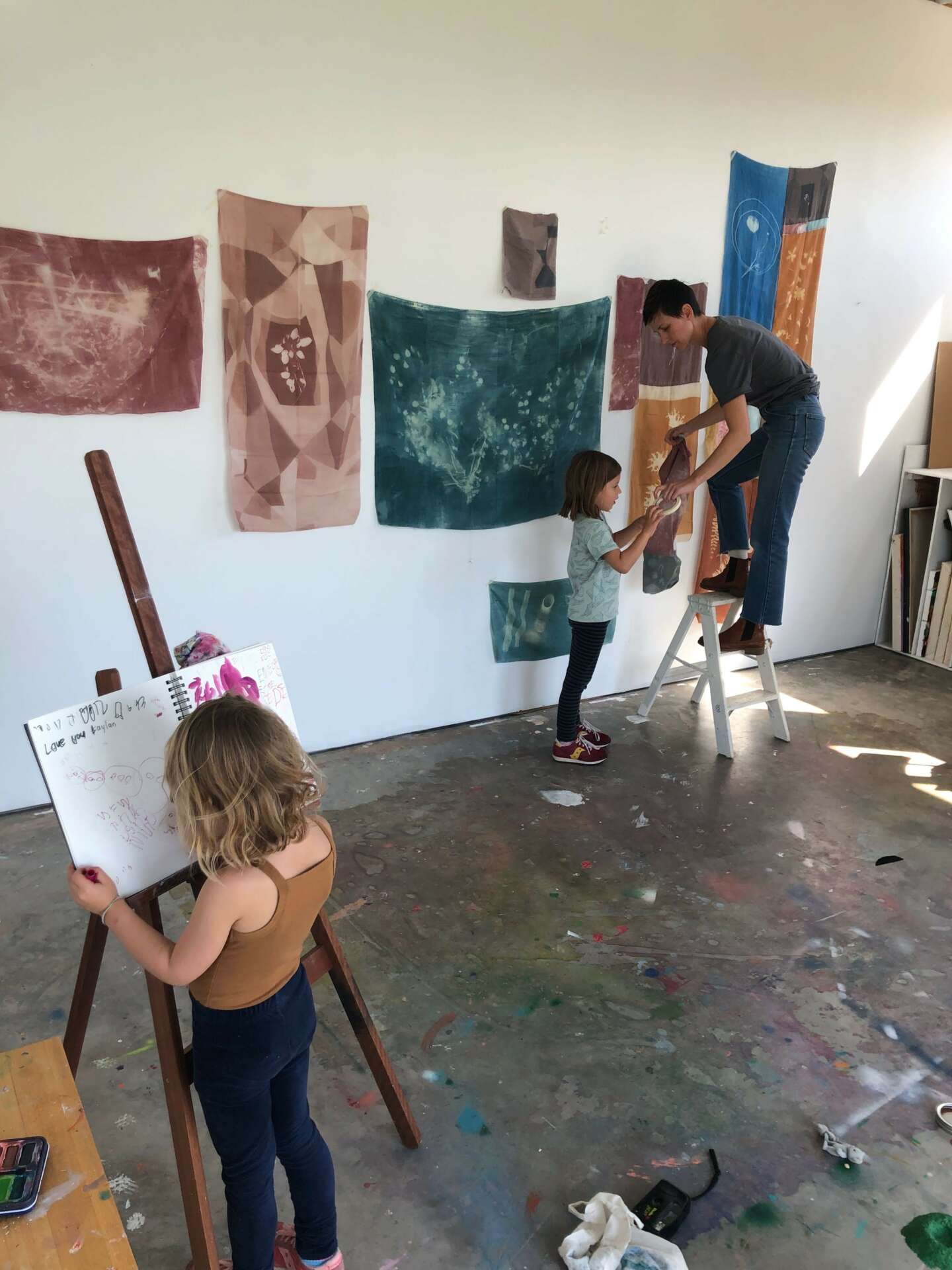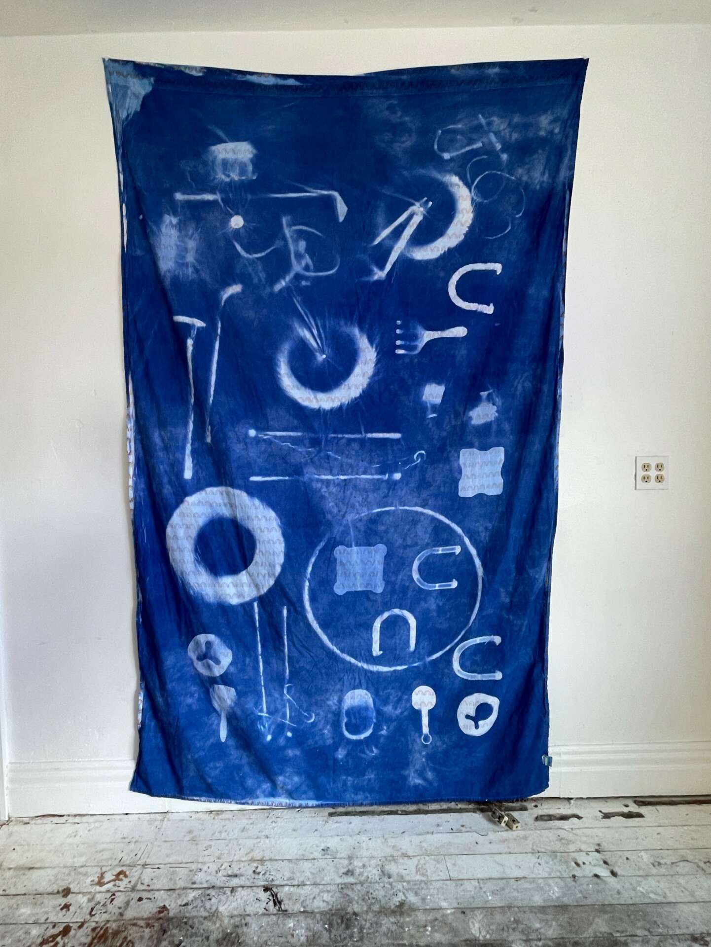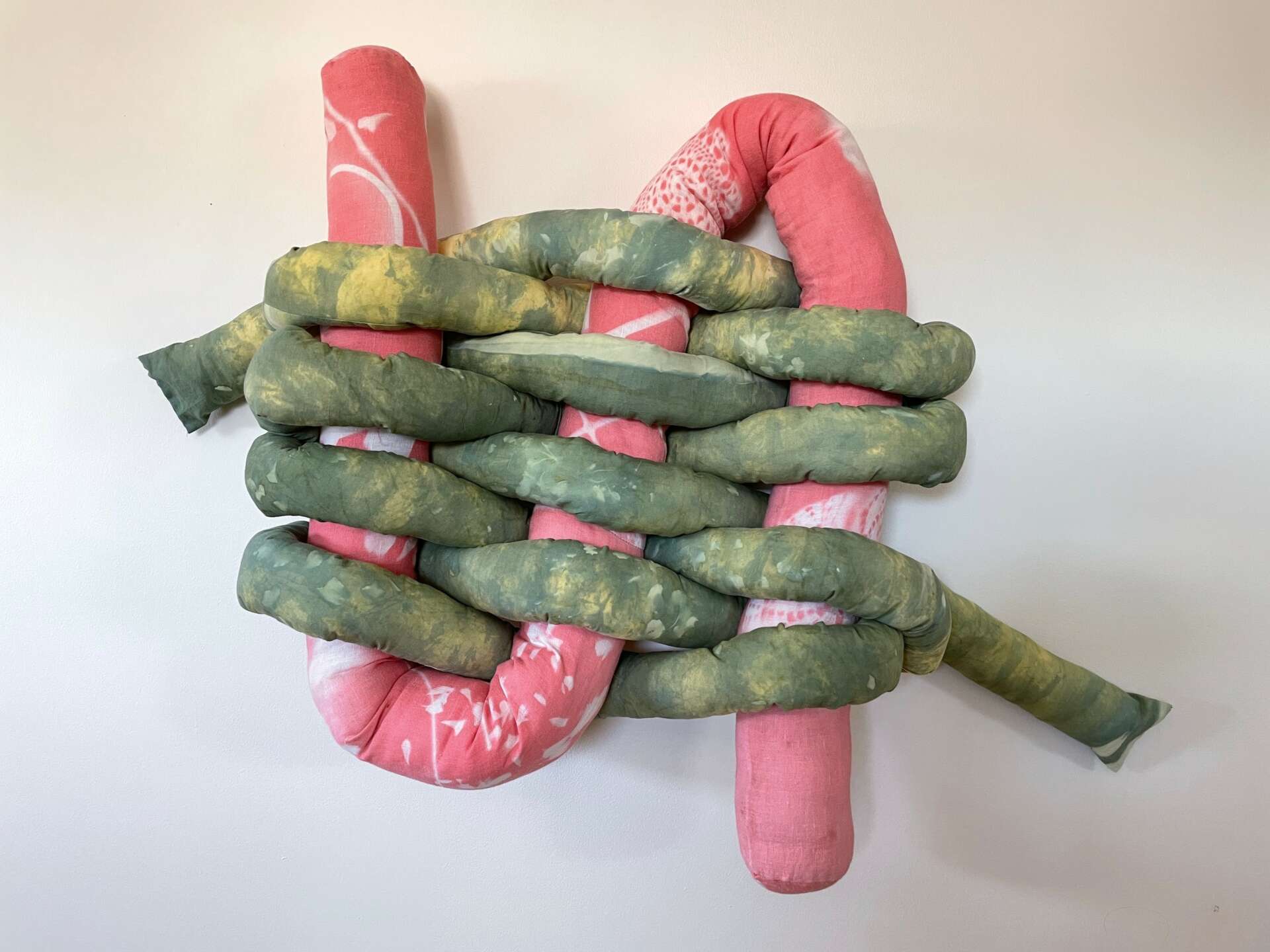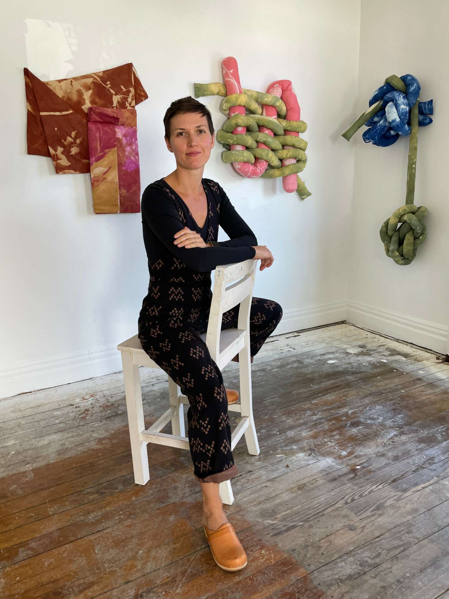I am a multidisciplinary artist currently working in fiber. In my work I use alternative photography techniques to create textiles and soft sculpture that explore the intersection of motherhood and the physicality of caregiving, investigating how the maternal experience feels in the body. From a young age I have invited my children into the studio to collaborate with me. In my Acute Onset series, I give my children nearly free rein to make large sunprints, which I then sew up and twist into tightly bound knots. Exploring the space where mothering and anxiety meet, these pieces address feelings of uncertainty amidst repetition and explore the weight of anxiety alongside the playfulness of childhood activities such as imagining, gathering, ordering, and archiving. My work has been shown in galleries here in the US as well as in the UK.