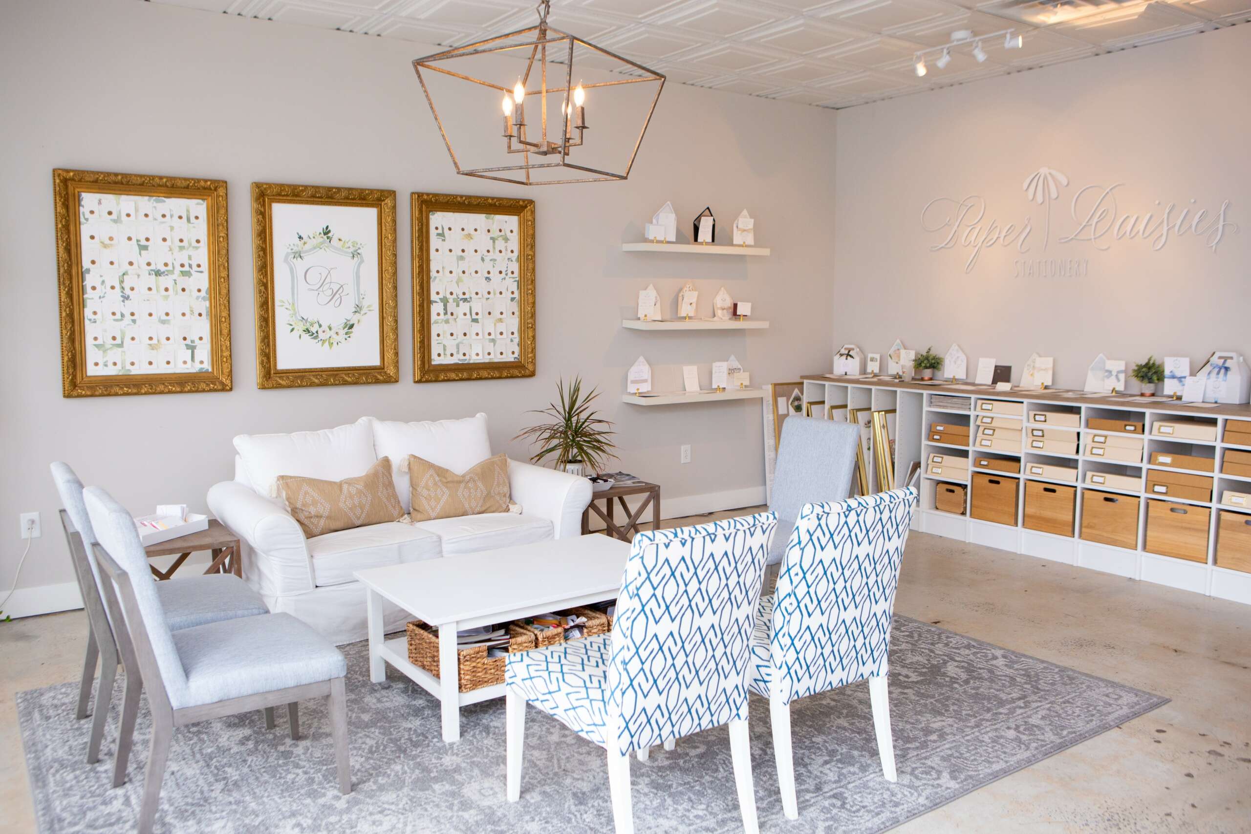 We design and create beautiful and unique invitations for our clients. I always say we have one job and that is “to make people want to come to your event.”. We want our invitations to make them want to go out and buy a new dress! We put a lot of love and hard work into everything we do, from our designers, to pre-press, our printers and our production team. Everyone takes ownership and has so much pride. We also strive to make Paper Daisies an inviting place to come to. We absolutely LOVE when a wedding planner comes to an appointment early or stays behind because they want to visit with us.