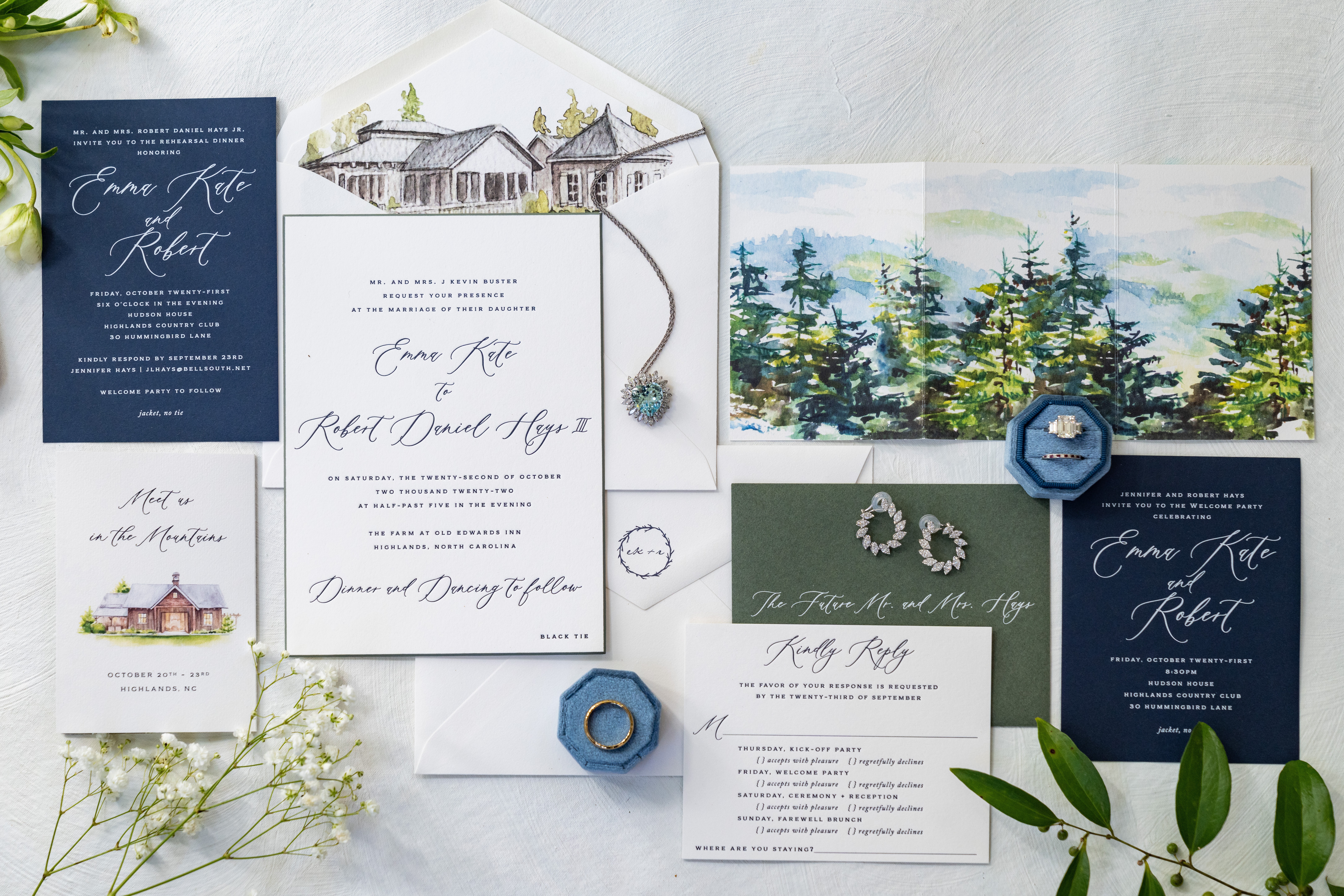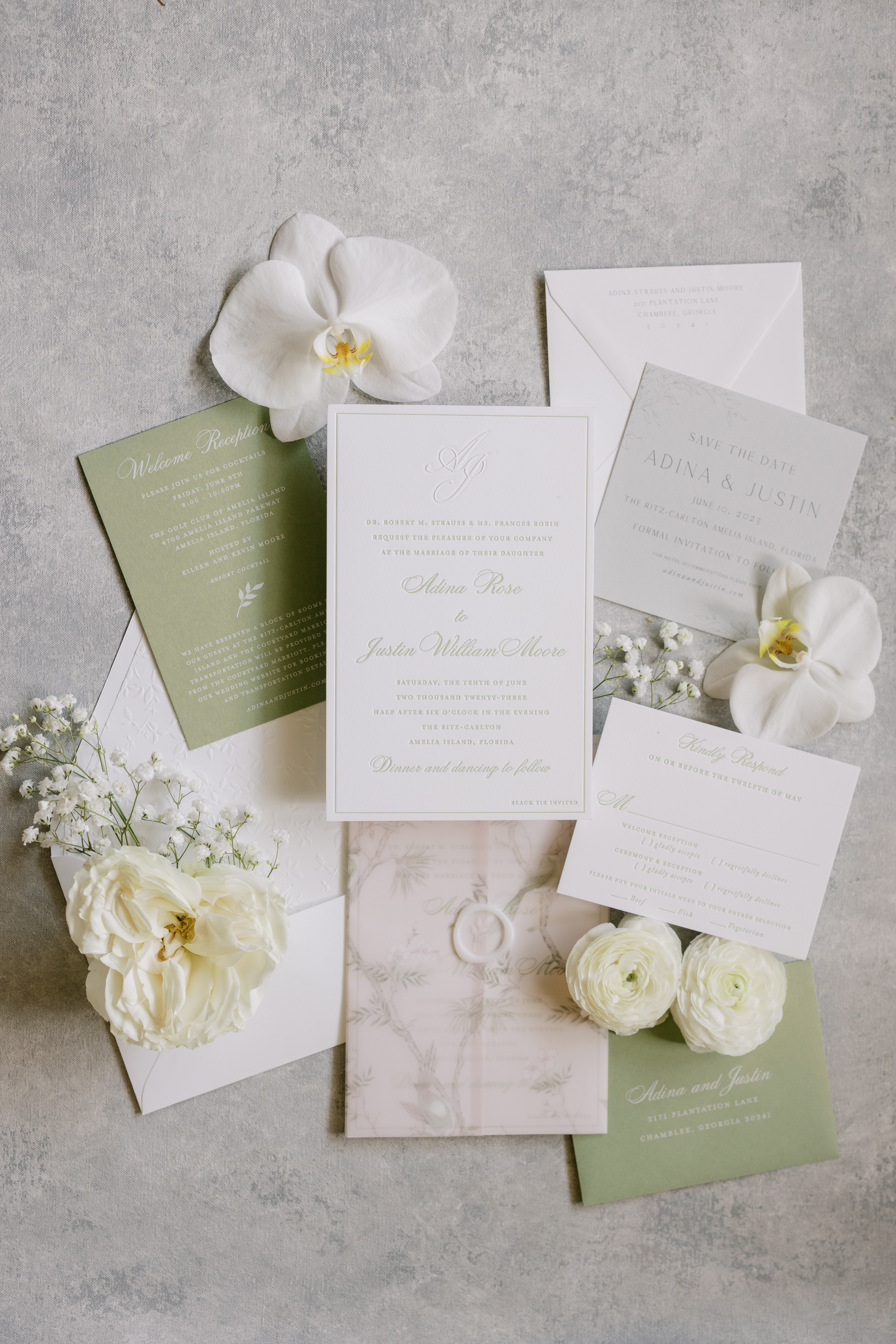 Our website features pre-designed suites, all designed by us, that can be ordered a-la carte. Our clients can add on high-end features like letterpress and foil, wax seals, envelope liners, ribbon and custom art/watercolors. We love working with wedding planners and strive to create a high touch experience for their couples. We invite customers who order from our website to visit our design studio for a 45 minute consultation where they can meet with one of our online designers for some help and guidance. Our custom experience begins with a complimentary consultation where a designer will walk the couple through all of the endless options, high-end printing techniques, unique embellishments to make their suite unique and any custom art that could be created for the project. There is a starting budget of $4,000 for invitations for the custom bespoke experience.