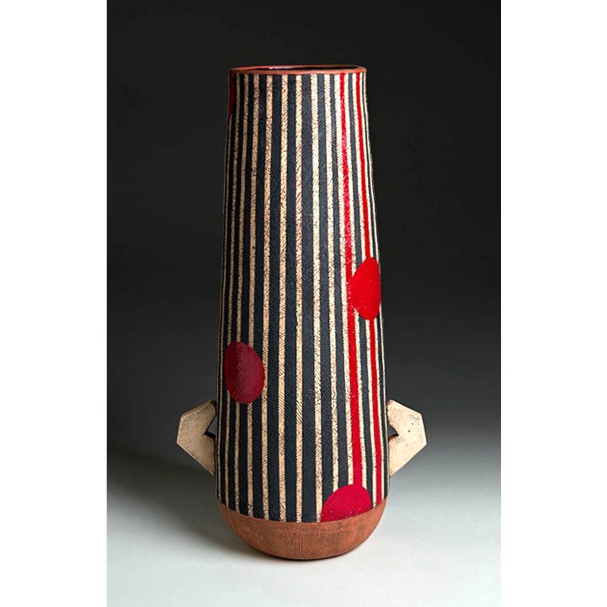 My formal art education took place in the 1970’s at California College of Arts and Crafts (now California College of the Arts) and at University of California, Berkeley. In the 1950’s there had been a revolution in clay in Southern California where a group of artists challenged the conventional view of clay as a craft medium. They began exploring scale, abstraction, and sculptural forms, ultimately elevating the status of works in clay to works of art that found their way into galleries and museums. They changed the face of mid-twentieth century American ceramics. Peter Voulkos, founder of the California Clay Movement, and Viola Frey, another luminary, were teaching in the Bay Area by the 1970’s and I had the good fortune to study under both of them. By the time I graduated I had a strong foundation as well as an expansive view of the possibilities in ceramics.